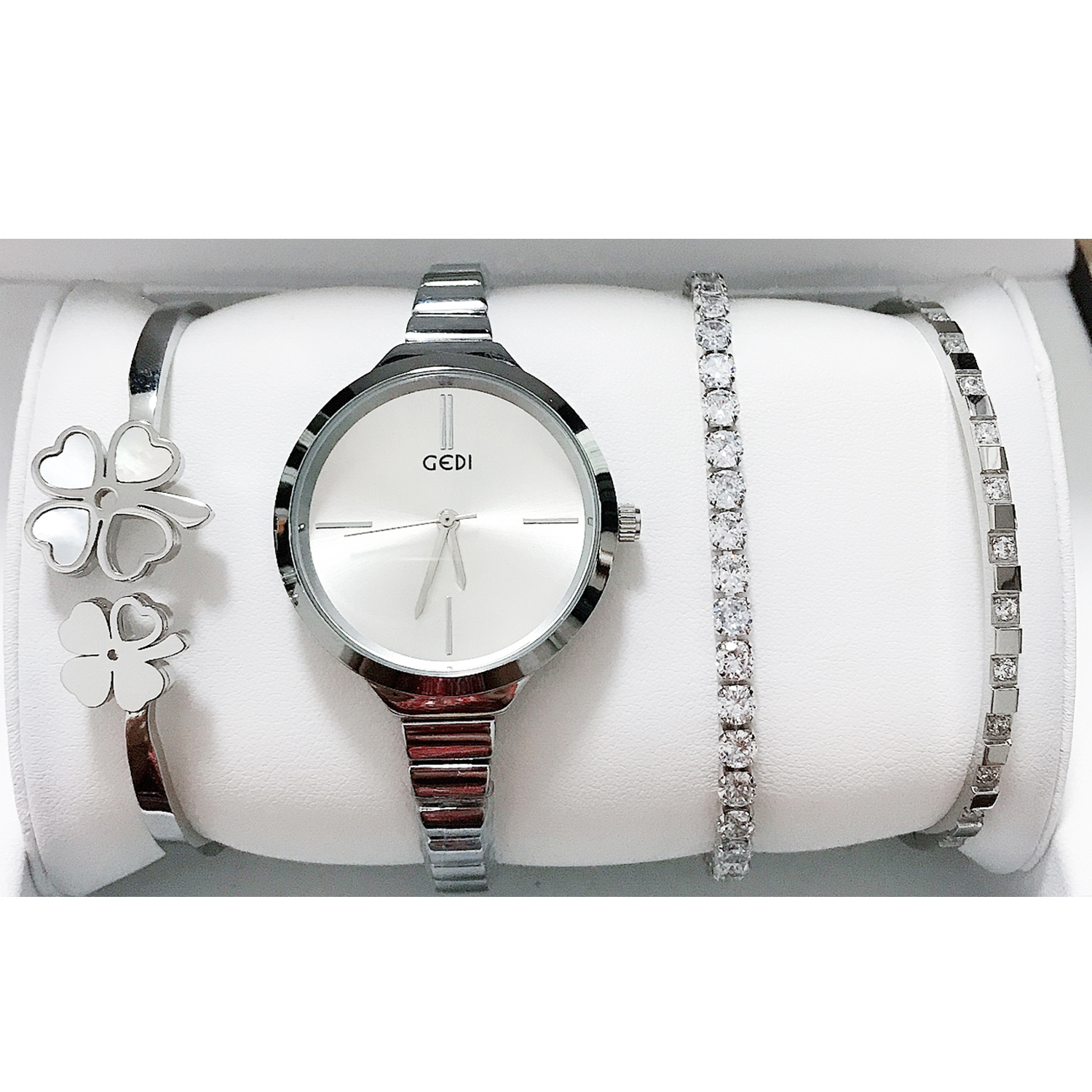 • Highlighted here is a set of Ladies fashion Watch with an alloy Case & Band and Stainless Steel Jewelry with good long lasting plating. Different models and colors of bracelet & bangle jewelry are available. Feel free to change the combination of the Gift set from our collection in your respective orders.