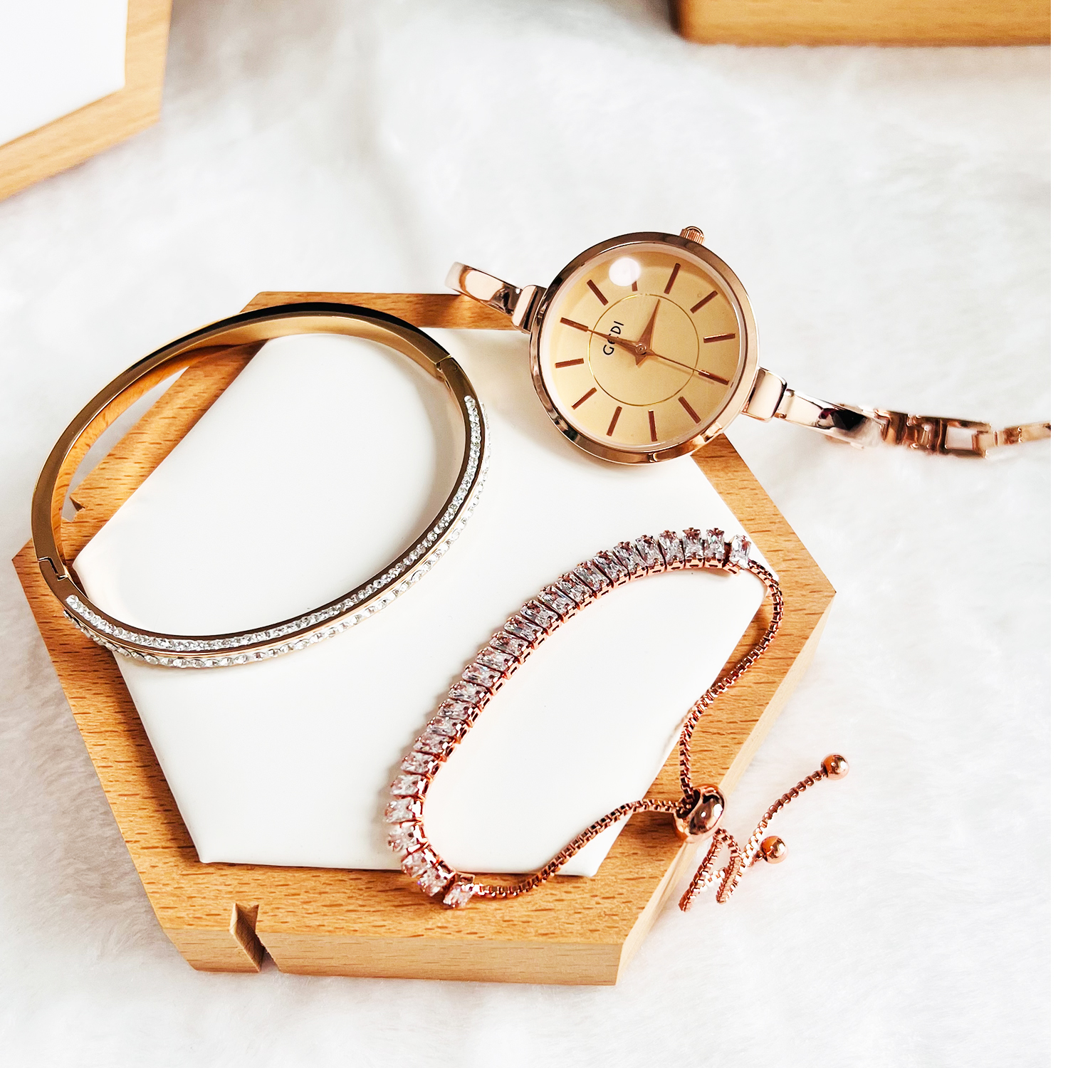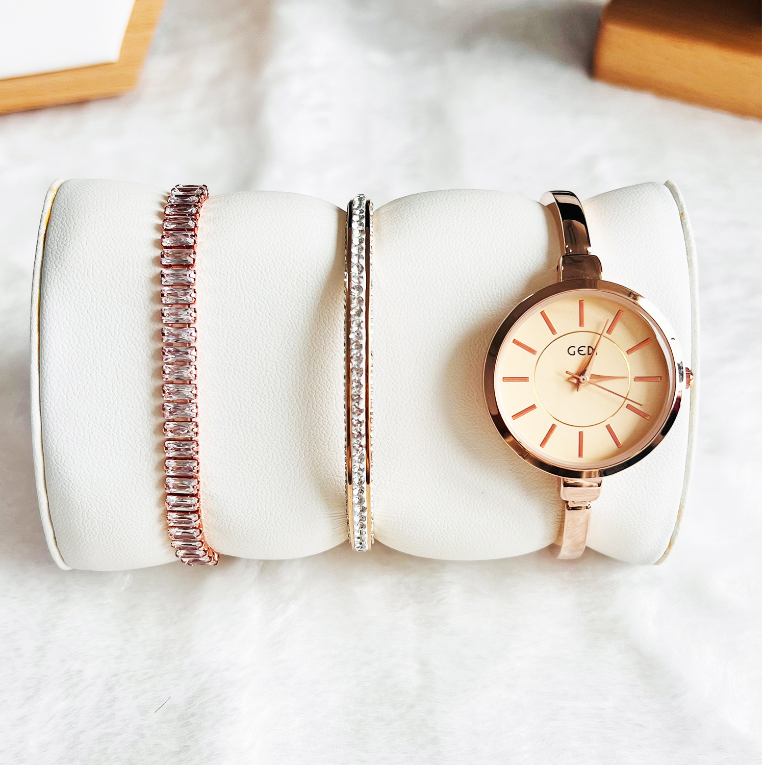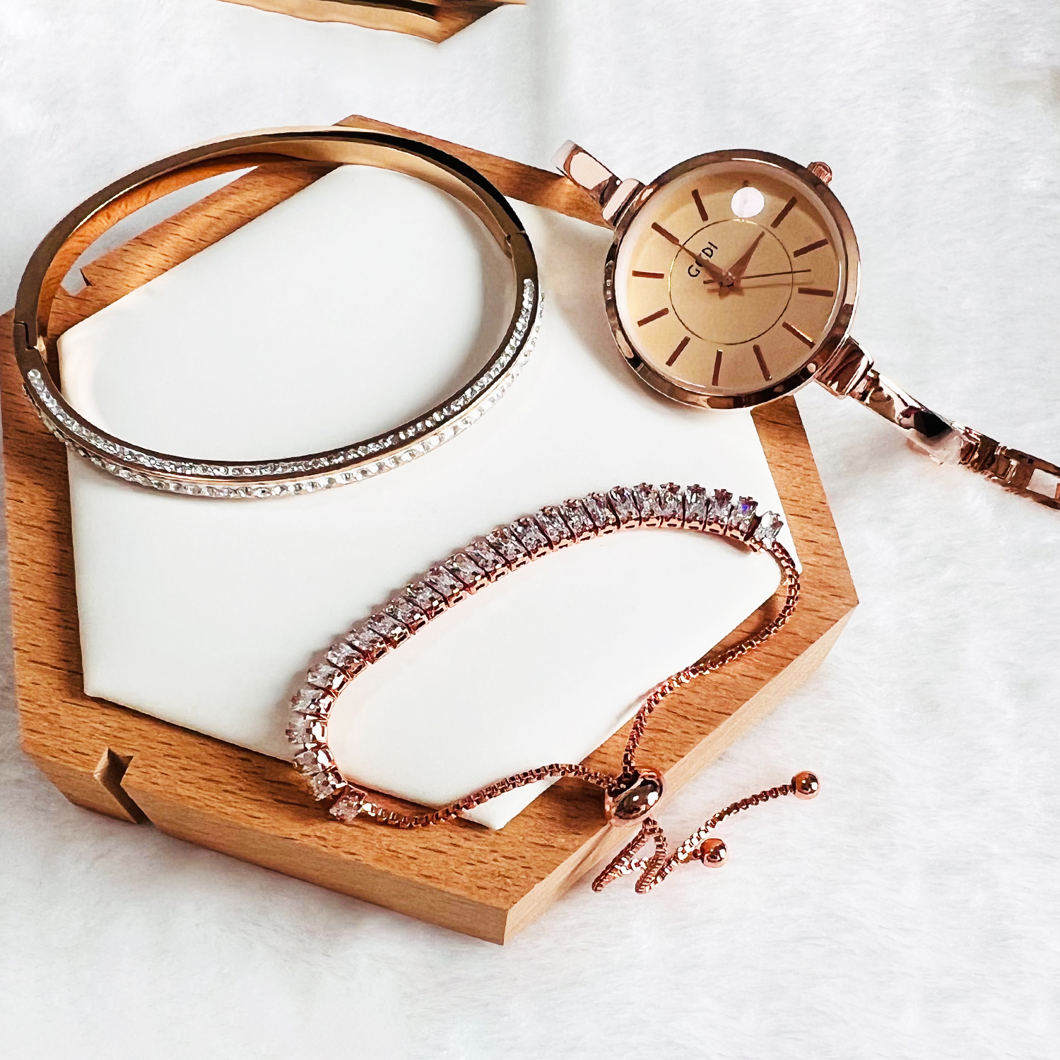 • Highlighted here is a set of Ladies fashion Watch with an alloy Case & Band and Stainless Steel Jewelry with good long lasting plating. Different models and colors of bracelet & bangle jewelry are available. Feel free to change the combination of the Gift set from our collection in your respective orders.