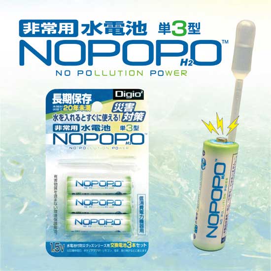 The water cell generates electricity when water is poured into it. It can be stored for about 20 years unopened. This water cell is widely used in various applications.