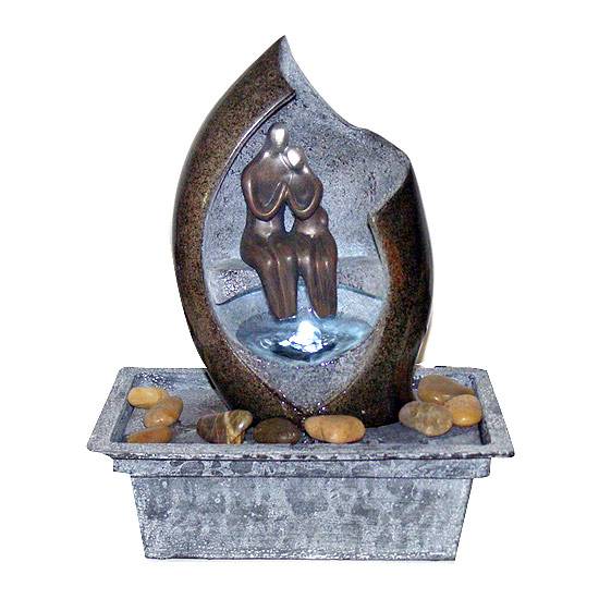 This water fountain(#38403) is available with 4 sizes. It has a strong bottom with some oval stones for embellishments. A egg-shaped decoration is designed with 2 lovers peacefully leaning close to each other and a fountain is under their feet.
