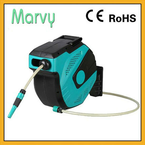 Description: Self roll-up water hose reel with 25m PVC water hose reel