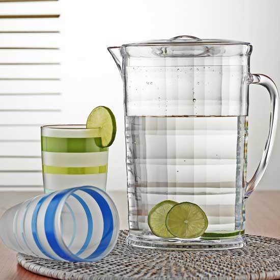 This water jug is designed with a stylish and modern appearance. The all-clear jug is crafted with fine curves and polished with a burnished touch. The simple design is suitable for homes, hotels, restaurants, etc.