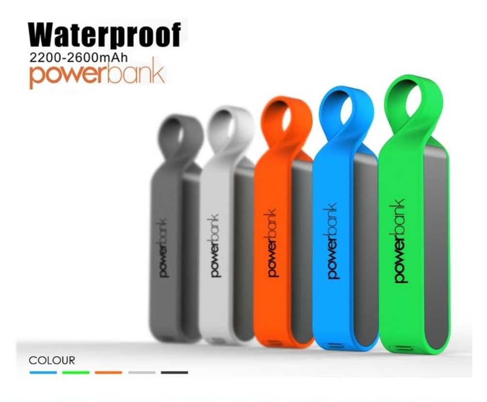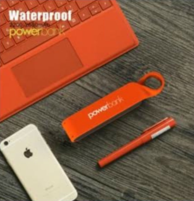 The pictured powerbank is IPX6 waterproof and offers a capacity of 2200mAh. It has a rubber ABS body and has a loop on top for attachment. This powerbank offers safe and quick charging and is excellent for outdoor activities like camping and fishing.