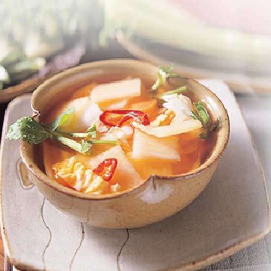 Ingredient: purified water, radish, garlic, stone leek, cabbage, carrot, dropwort, powdered red pepper, salt and red vinegar.