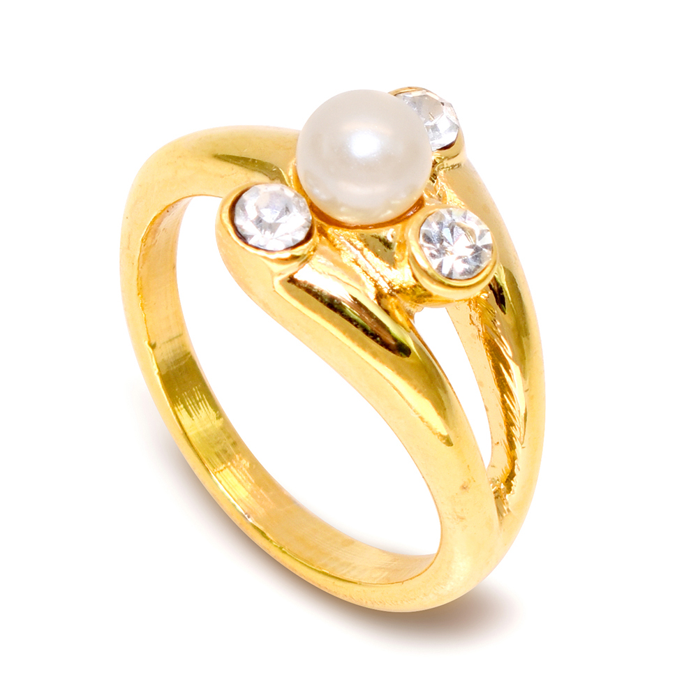 Waves Shape with Simulation Pearl & Crystal Ring(Item No. 3-0393(11))