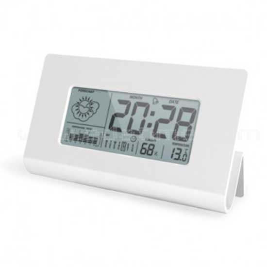 This weather station clock features a sleek rectangular-shaped housing in a white color. The large digital display is able to show time, date, humidity, temperature and weather forecast. The multi-functional clock is an excellent addition to the home or office.