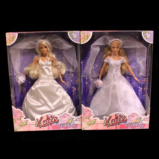 This dainty doll set features a bride in a stunning wedding dress with a veil, holding a bouquet in one hand. The gauzy finish adds vivid elegance. This wedding doll set simply captures you little girl's heart from the moment she first lays eyes on.