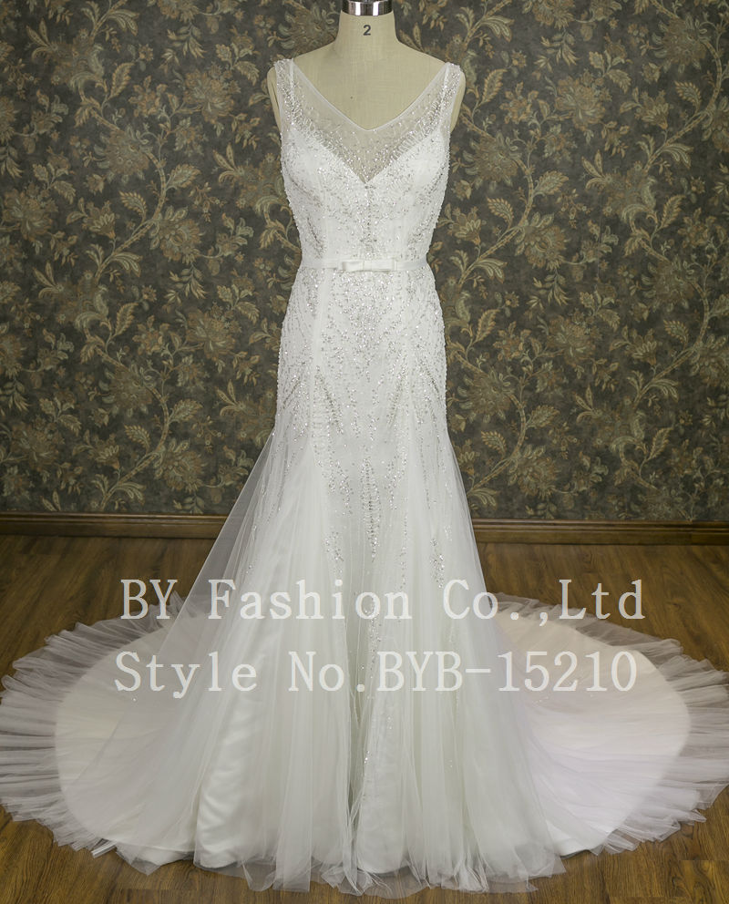 Wedding Dress Gown 2016 Real Sample New Design Heavy Hand Beaded Lace Customized Bridal Dress