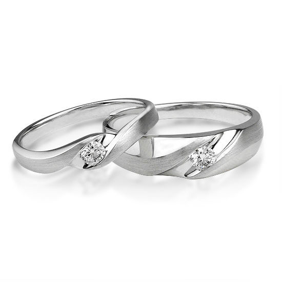 This is a pair of wedding rings with a high-gloss finish. The shimmering diamond as the centerpiece accents each piece. This pair of wedding rings is a simple yet elegant choice for couple lovers.