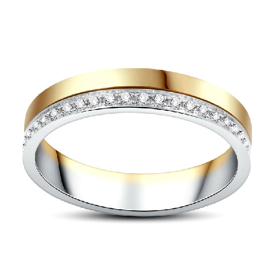 This wedding ring comes with a stylish and elegant design. It is crafted with dazzling diamonds on the 18K gold setting for added elegance. This 18K gold diamond wedding ring makes a pretty way to complement your chic look.
