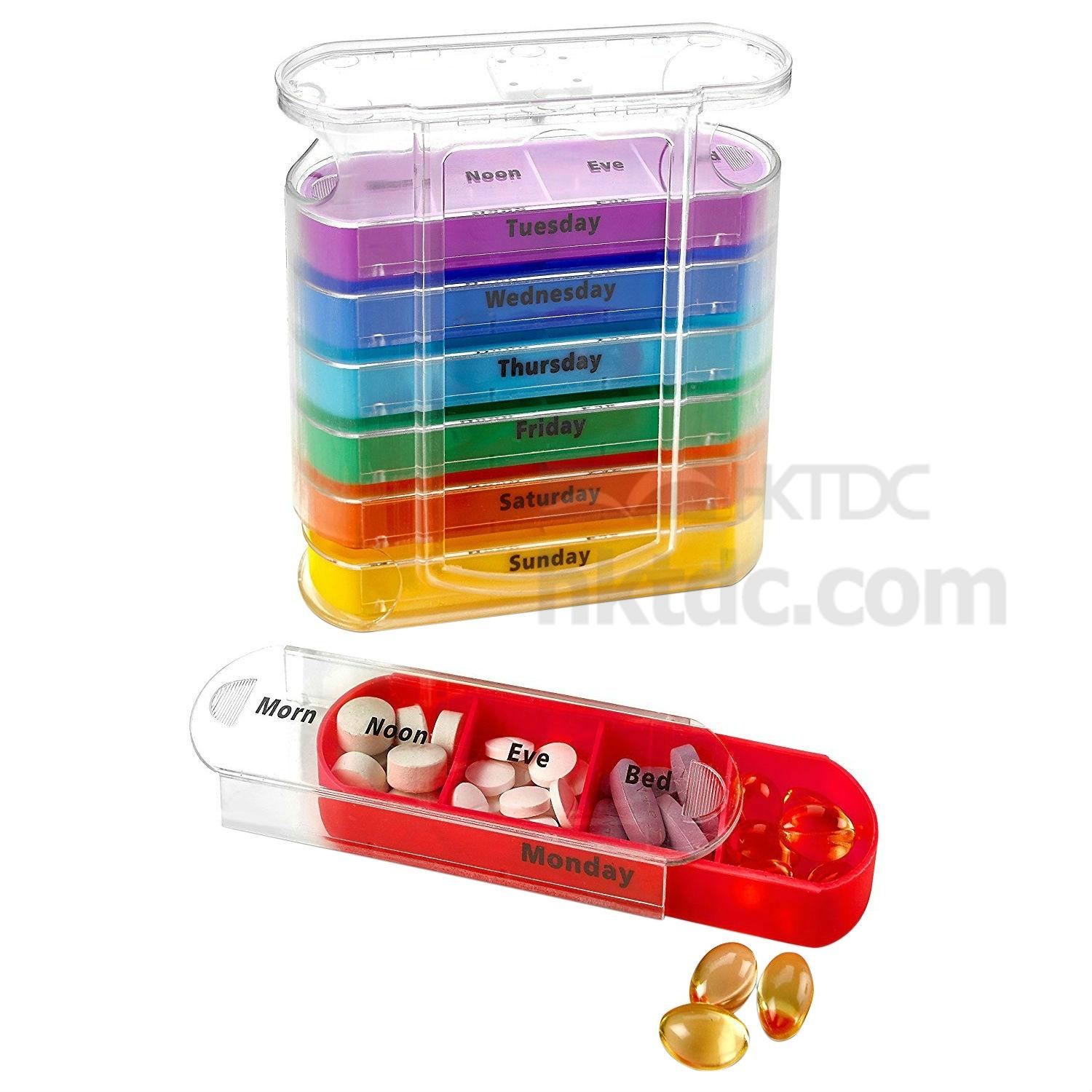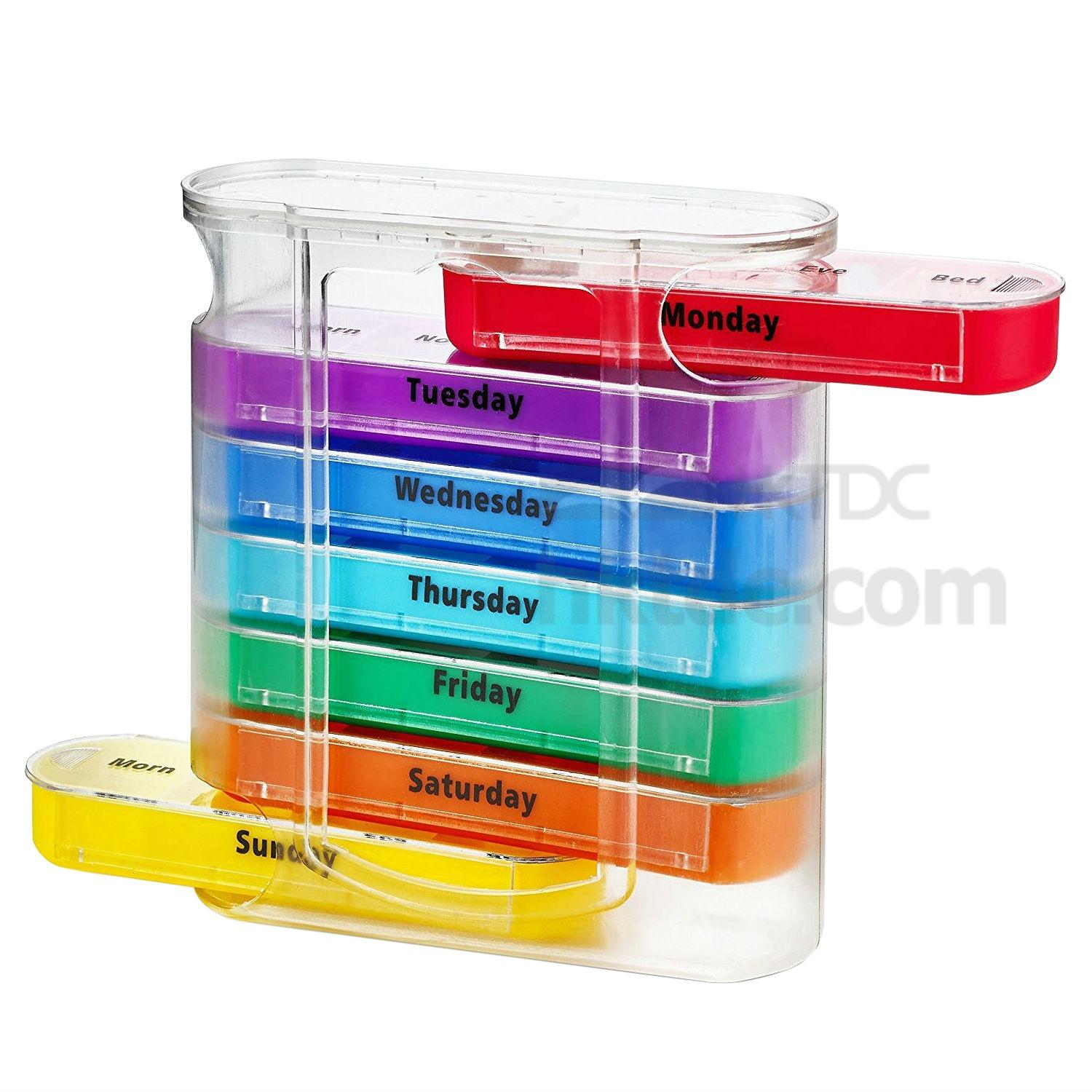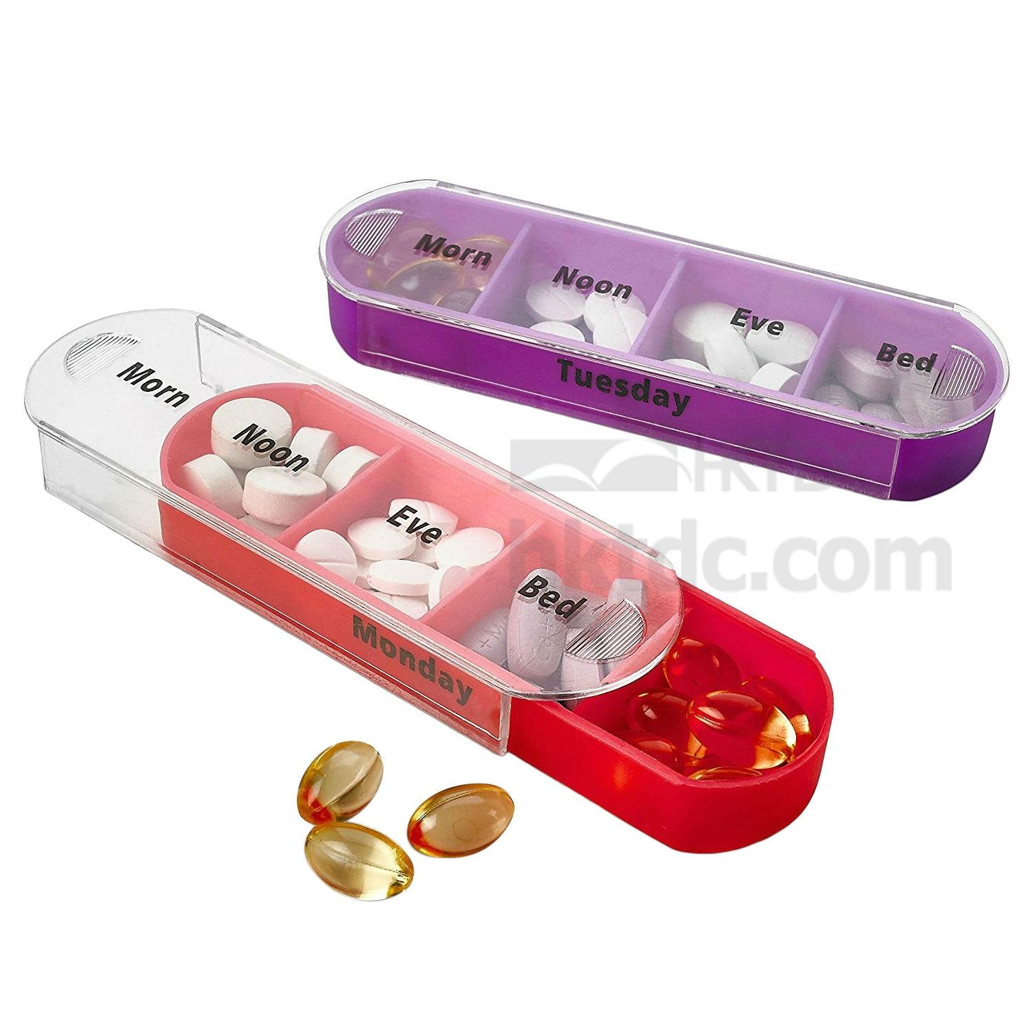 - Compartments are labeled with “morn”, “noon”, “eve” and “bed” for extra clarity.