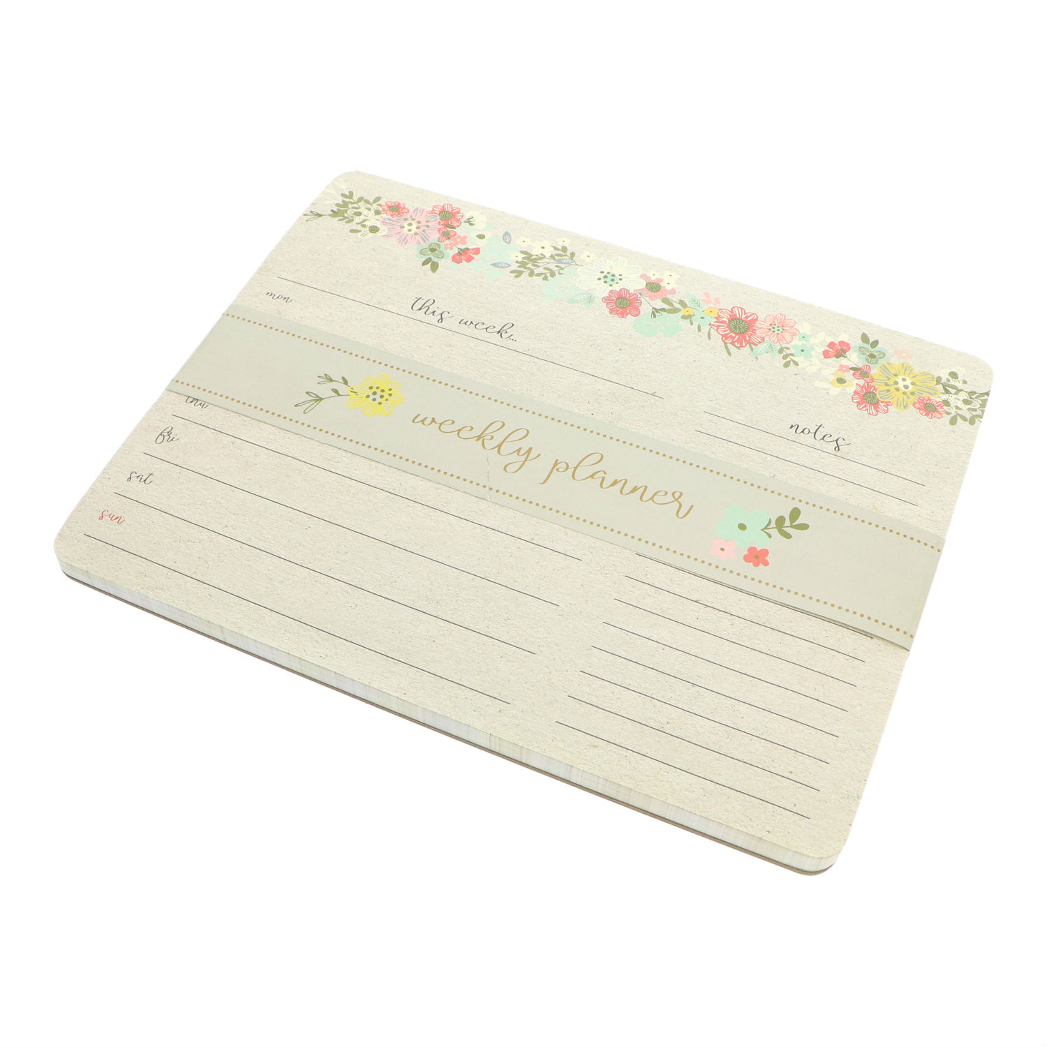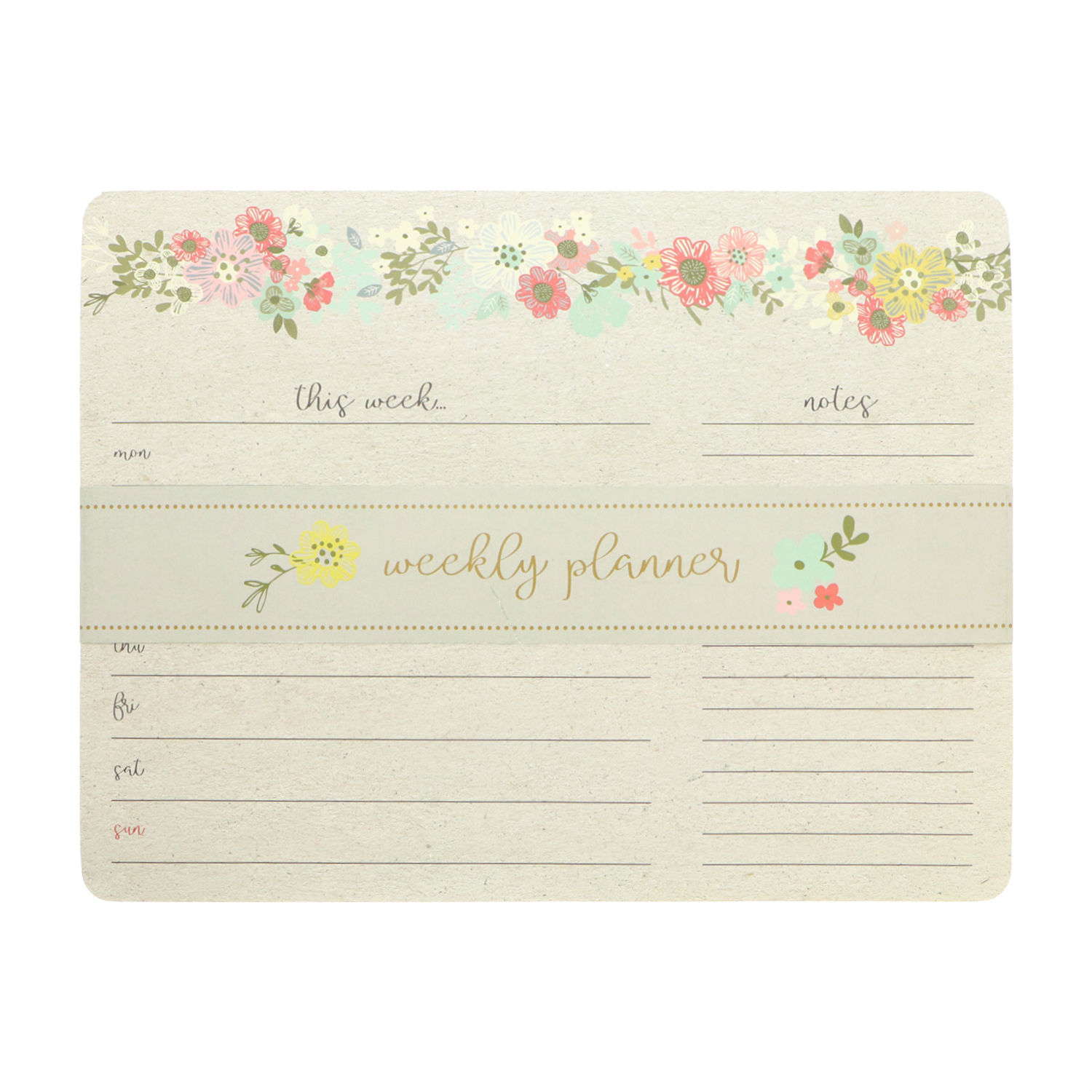 Make sure you won’t miss important events with this weekly planner. It has lined pages in a rounded rectangular shape and offers ample space for writing down what you need to do this week. The weekly planner comes in a floral printed design and is perfect for keeping an organized schedule.