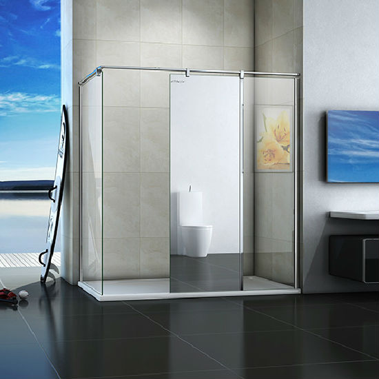 Polished chrome aluminum profile, 8mm tempered clear glass and tempered reflective glass, with adjustable support bat.