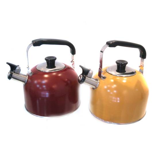 This is a whistle kettle. It has a 3.5 Litre capacity. It features a hinged whistle flip for easy pouring.