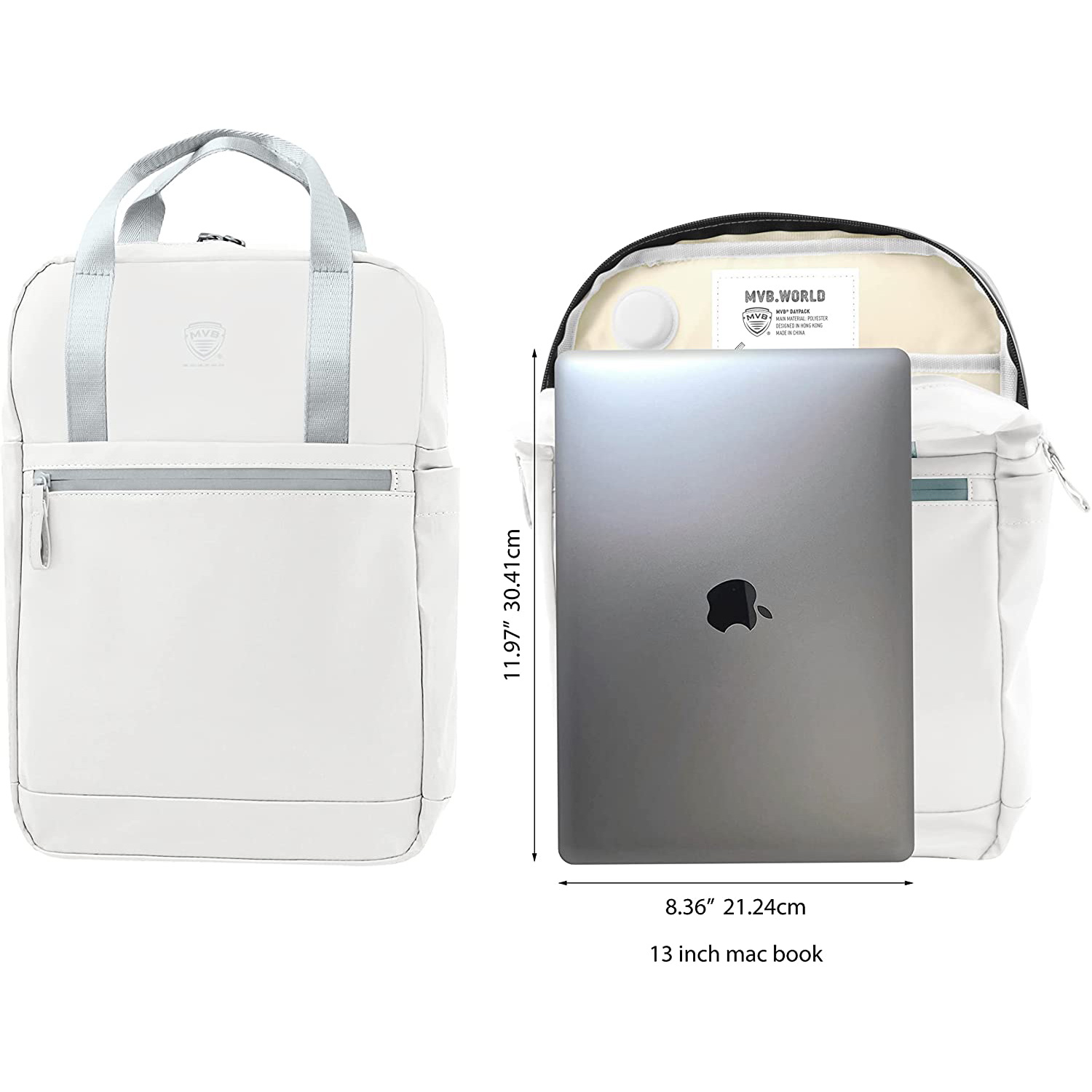 Backpack Airtag Bag AirTagable Daypack Vegan Leather for Kid Unisex Men Women Fits 13 Inch Notebook MVB Creamy White