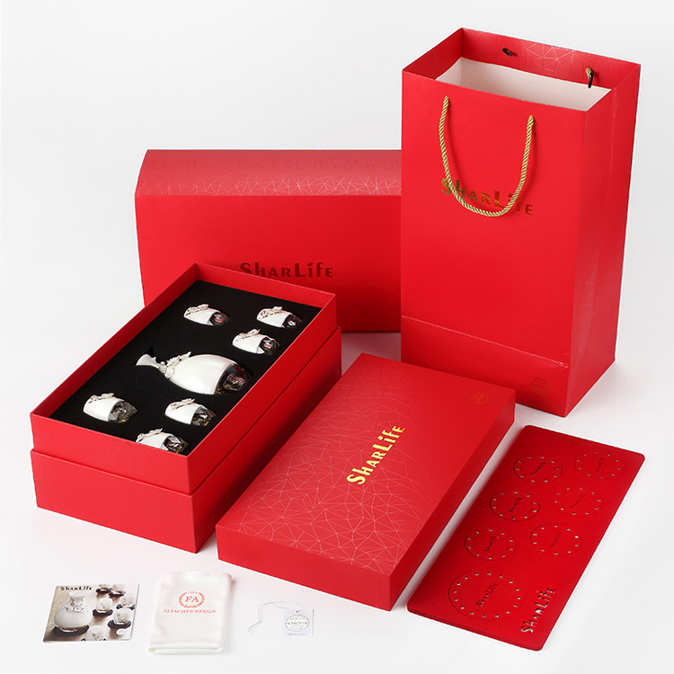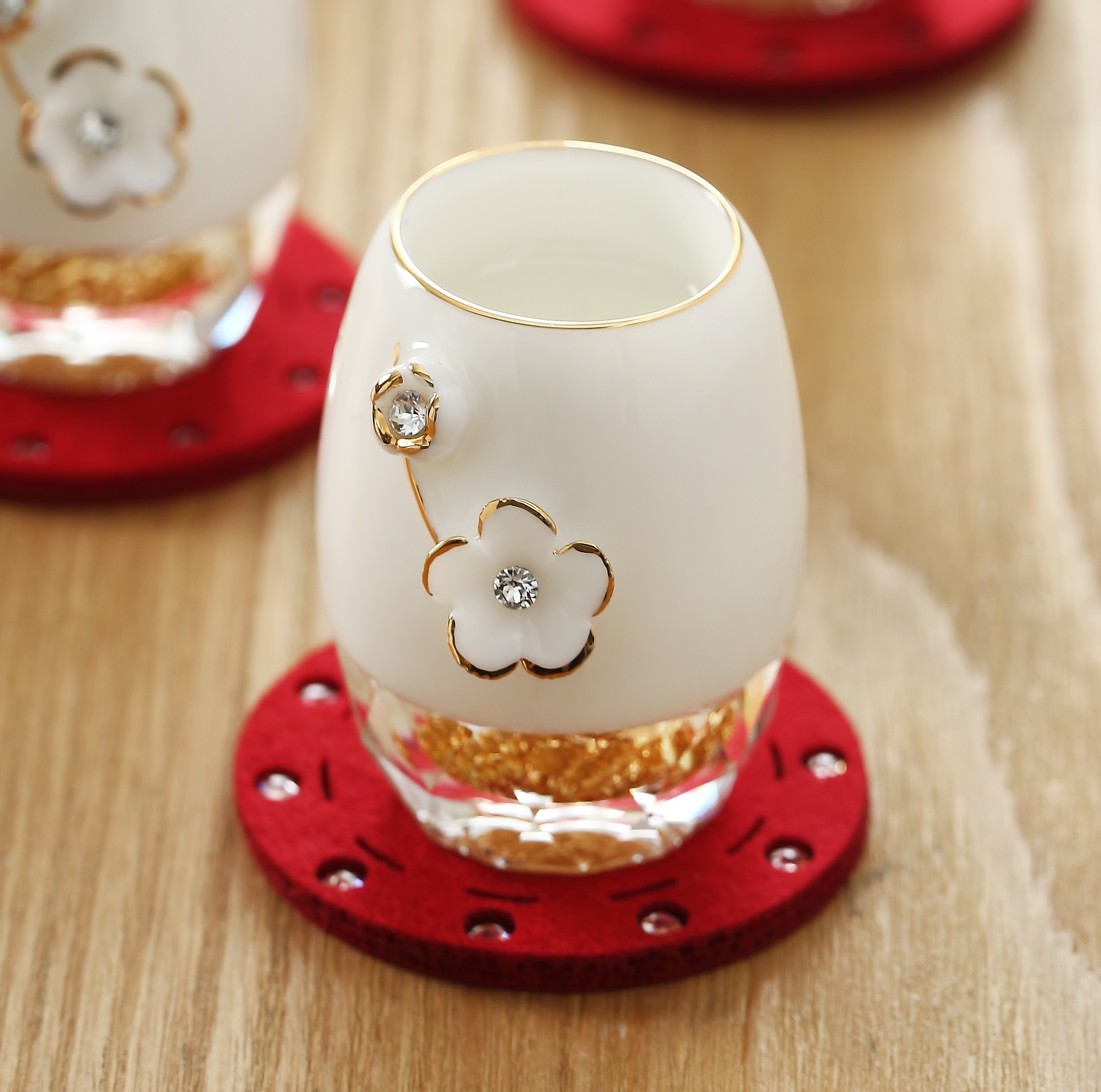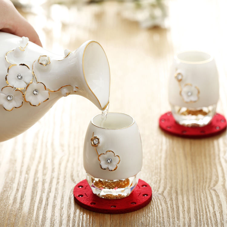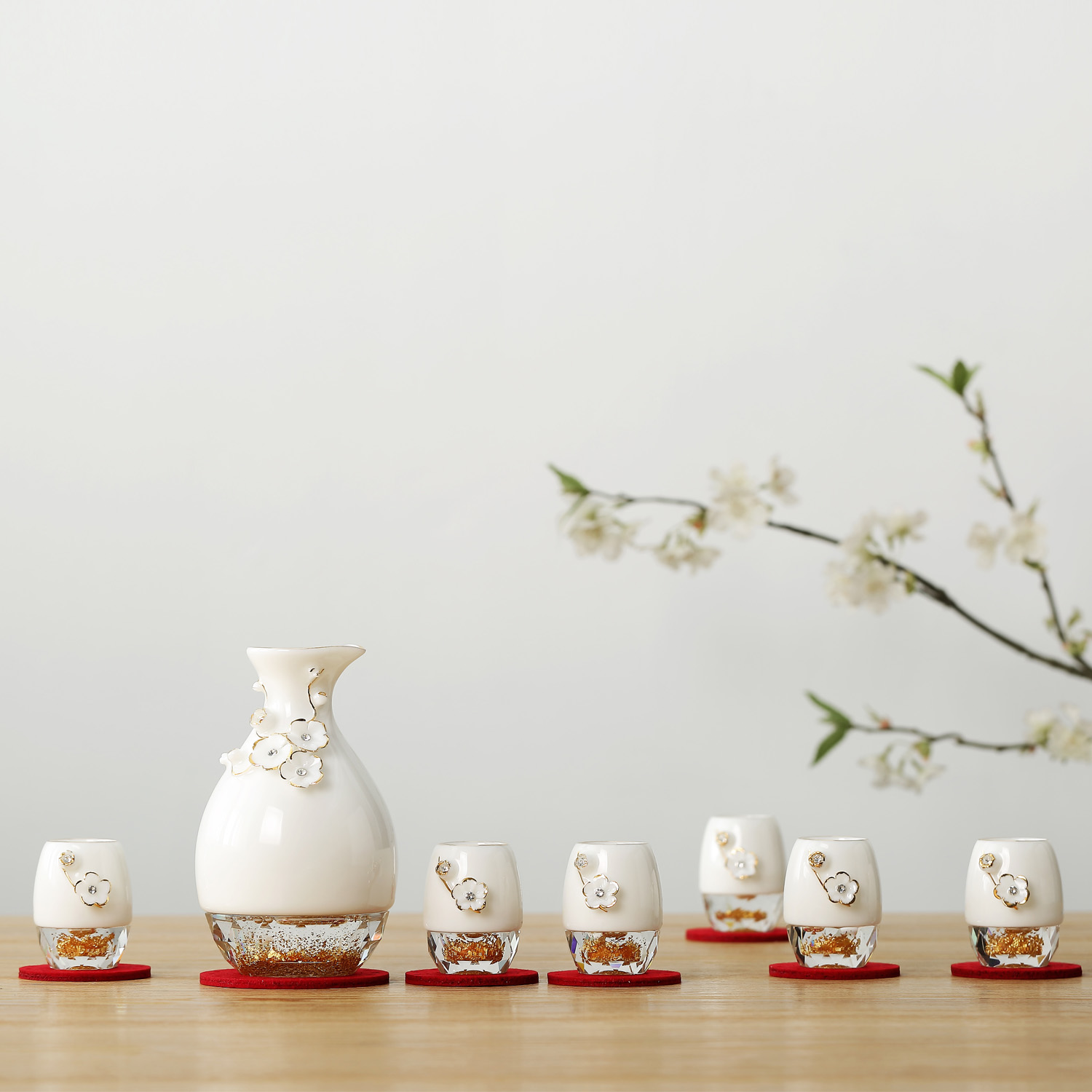 Negative Ions White Ceramic Shot Cups with Wine Jug Set