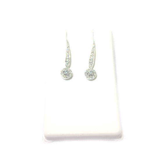 This is a pair of white gold earrings that shimmers with a high-gloss finish. The allover dazzling diamonds accent these earrings. This pair of elegant earrings pairs with your outfit nicely.