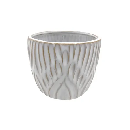 White Textured Ceramic Planter Pot | Small Embossed Pattern Flower Pot for Indoor Home Decor | Modern Boho Glazed Pottery Plant Container for Succulents & Greenery