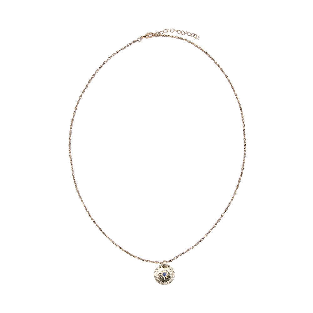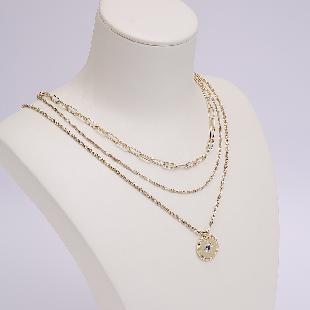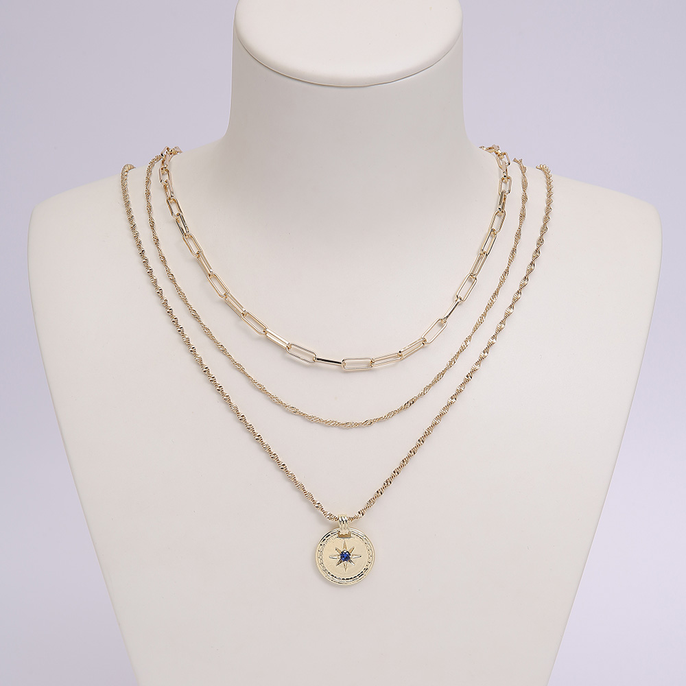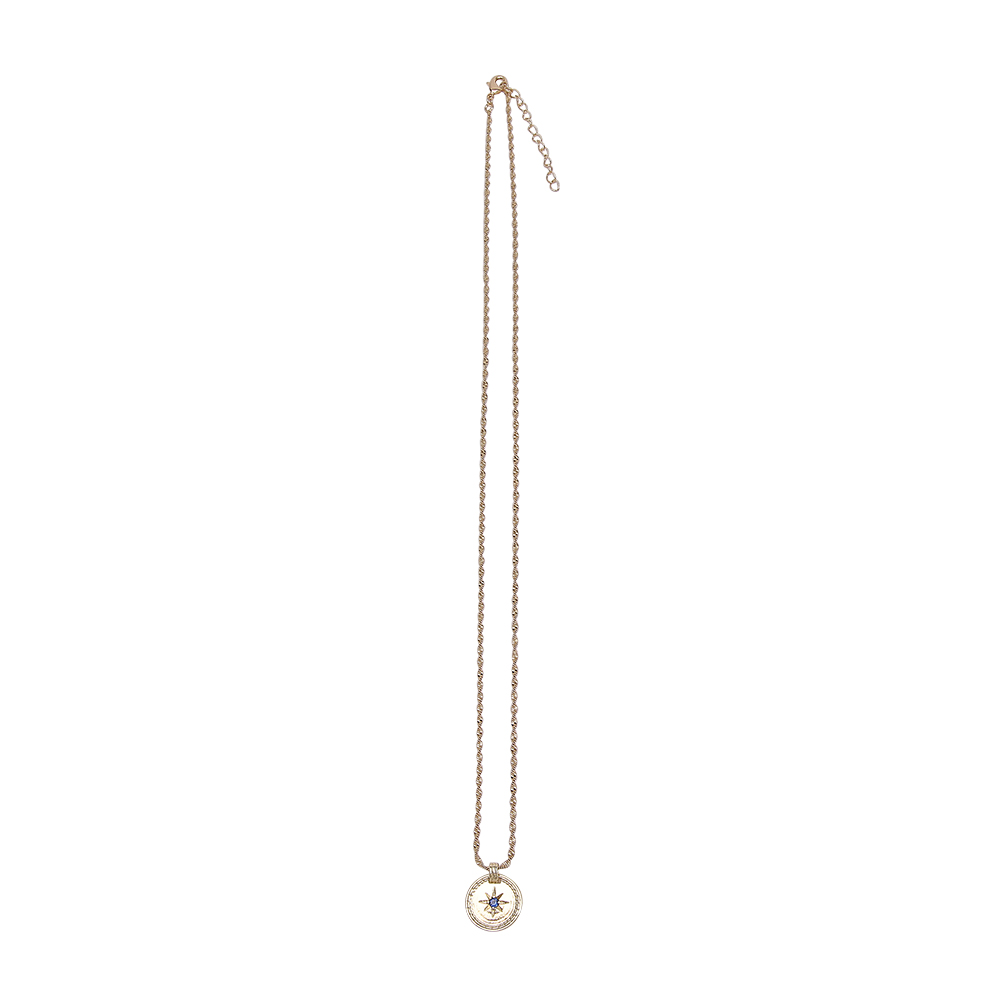 Wholesale 12k gold-plated 2022 new ins astrolabe sapphire round card drip oil retro necklace