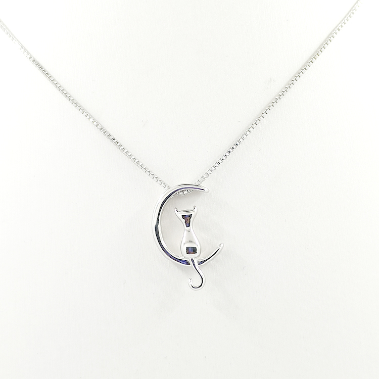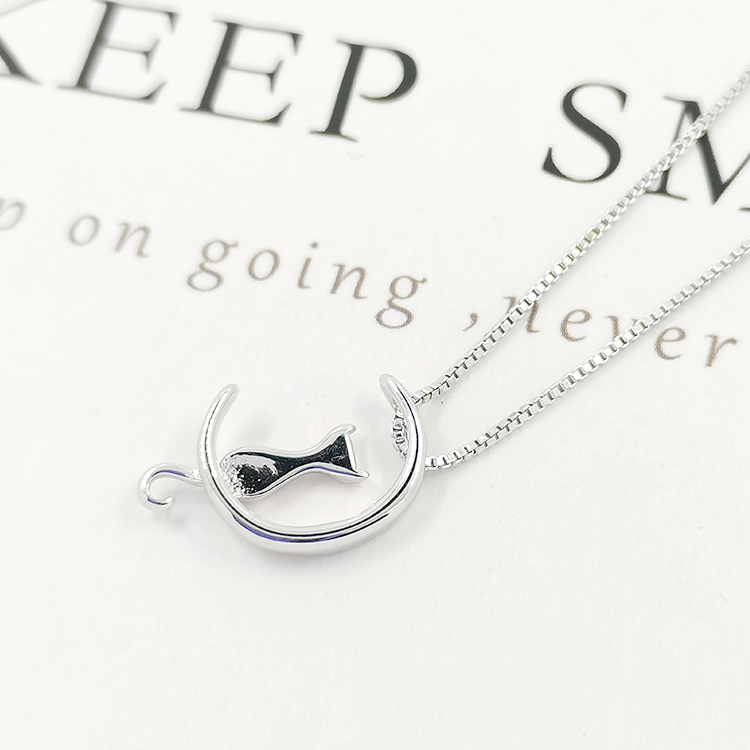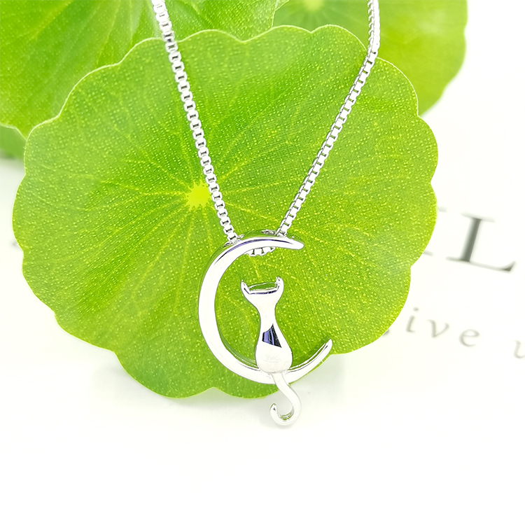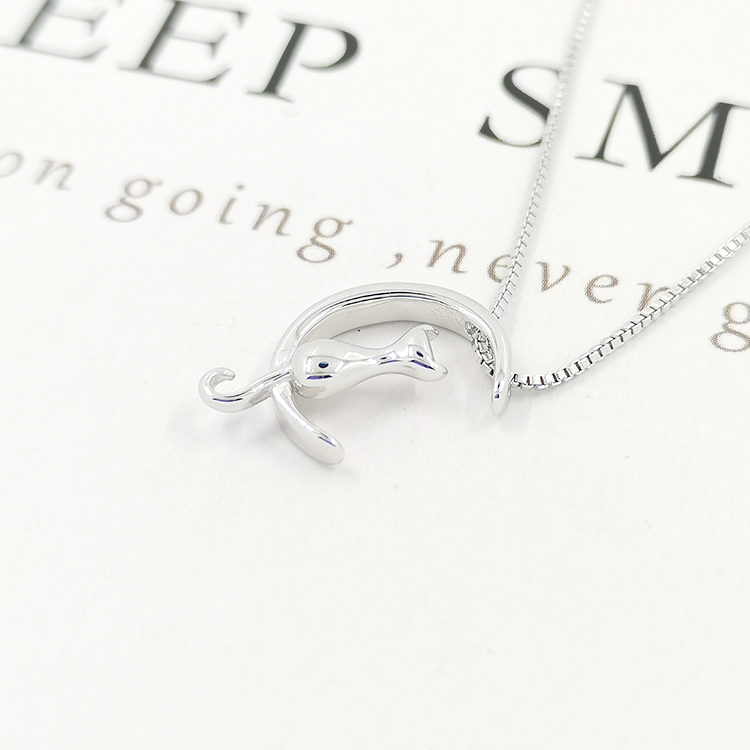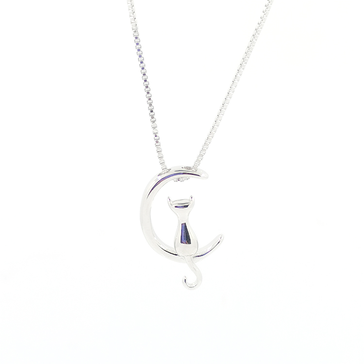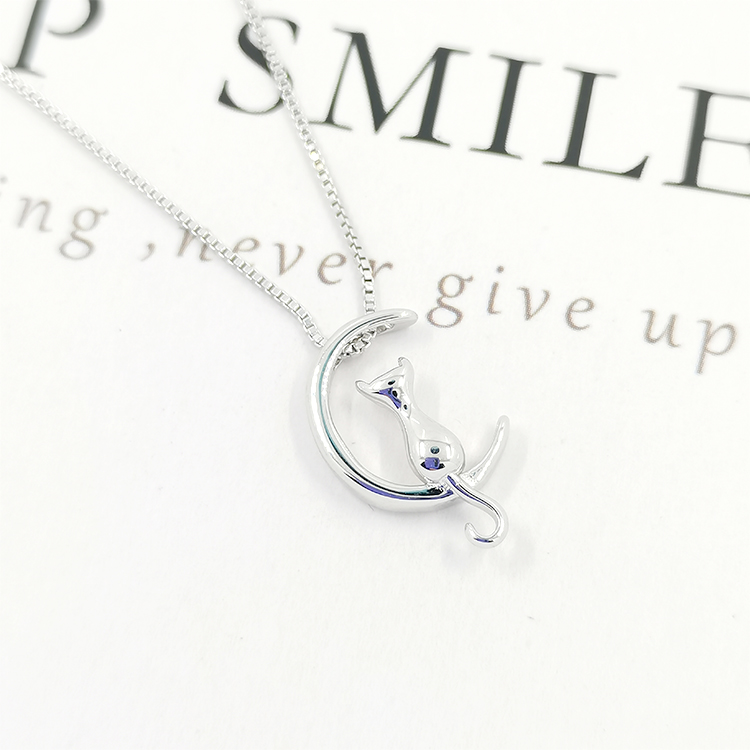 Wholesale Baby Girl Necklace Bling Pendant 925 Silver Moon Design Cartoon Cat Custom Necklaces