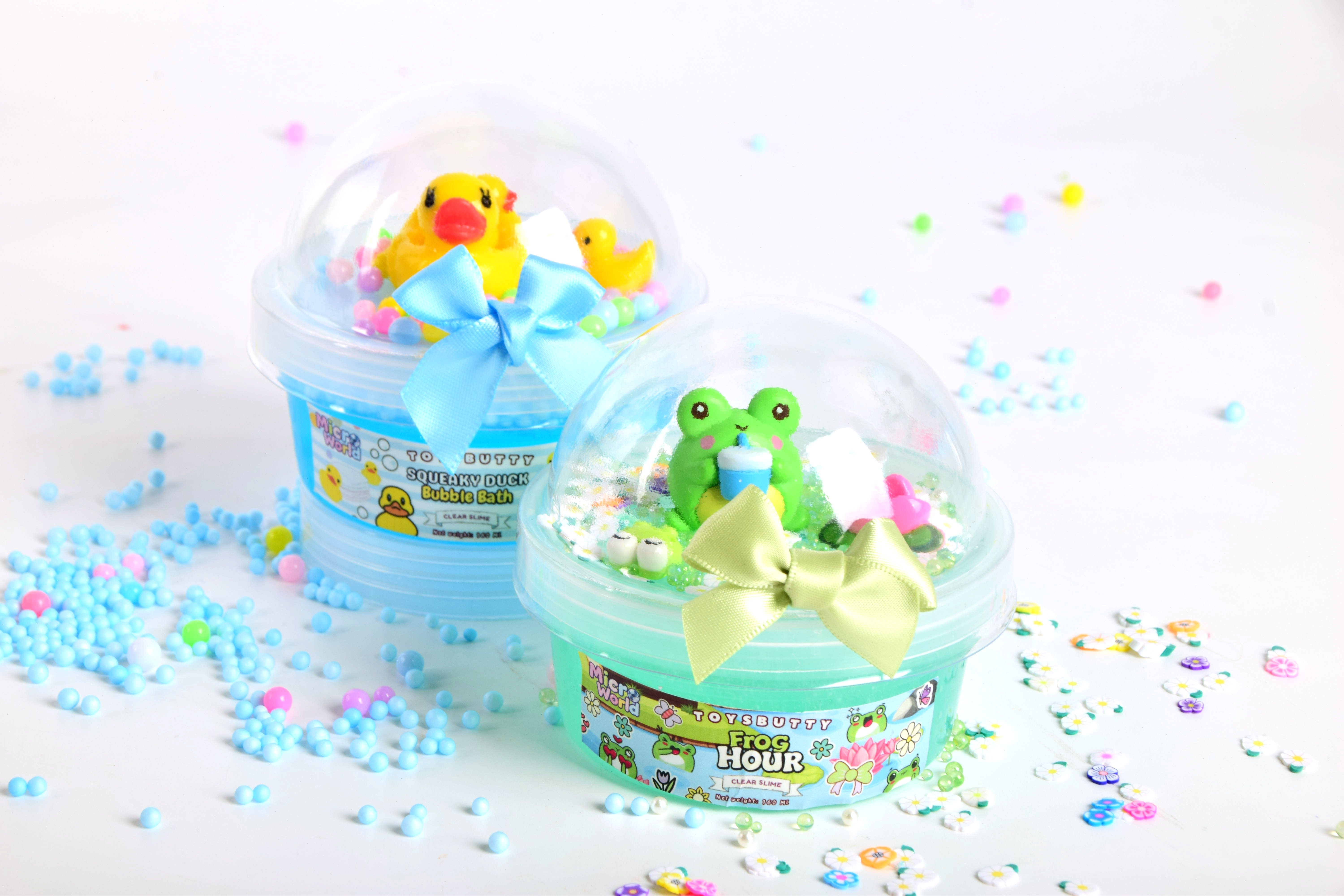 Add-ins: holographic beads,big duck charm,small duck charm ,bowkno,white flower slices,mixed color flower
