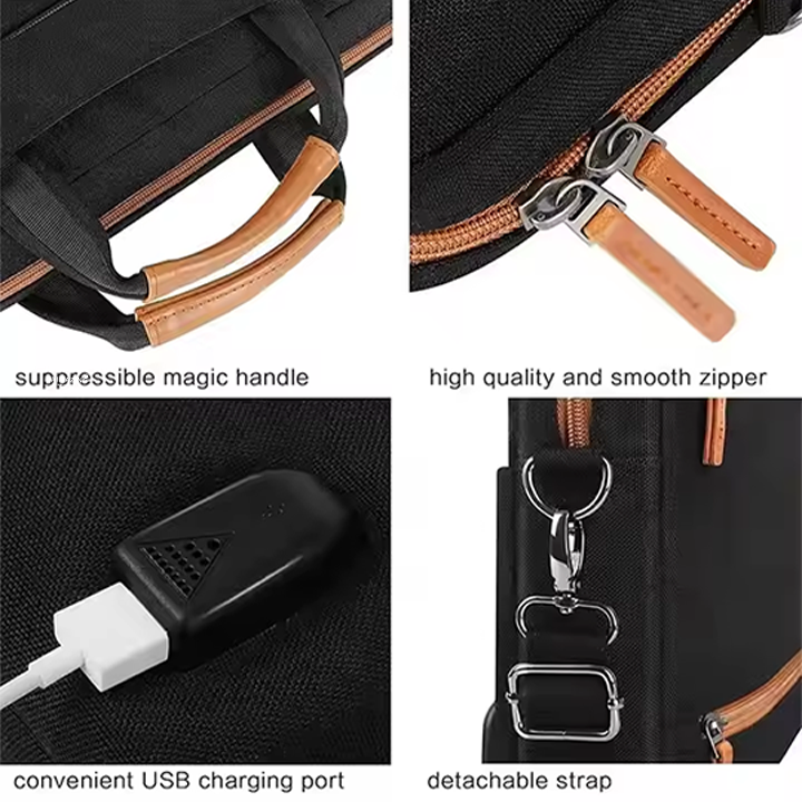 1. Durable polyester notebook bag for men with 4-layer protection, stylish design, and USB charging port for on-the-go convenience.