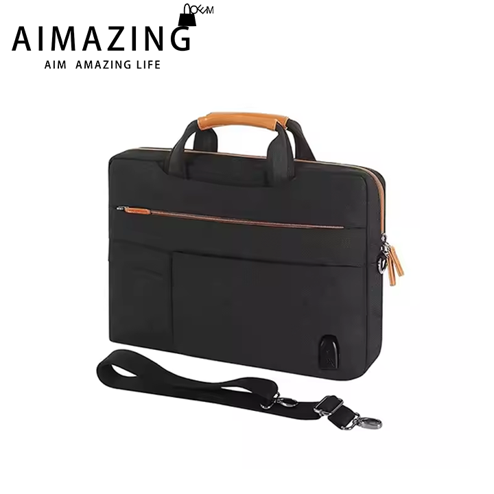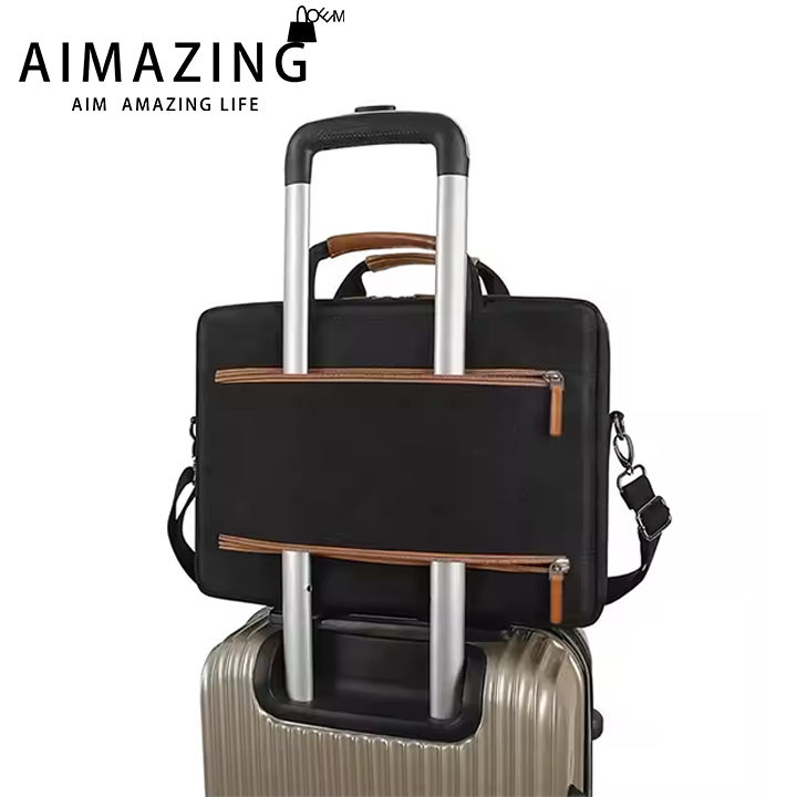 Elegant Aesthetics: The Aimazing MacBook laptop bags boast a sleek and stylish design that is sure to turn heads. The classic black color forms the base, exuding a sense of professionalism and sophistication. Complementing this are the brown leather accents on the handles and zippers, adding a touch of elegance and refinement. This combination of colors and materials makes the bag suitable for a wide range of settings, from formal business meetings to casual outings.