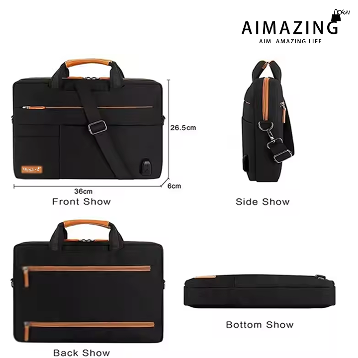 2. Stylish Aimazing men laptop bag: polyester material, multi-layer protection, ample storage, and versatile carrying options.