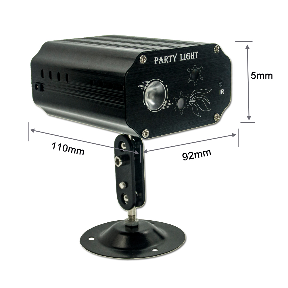 3 lens 16 patterns: Red and green laser with LED RGB backgrount build the atmosphere more stereo, with beautiful music, you are the world will be more perfect