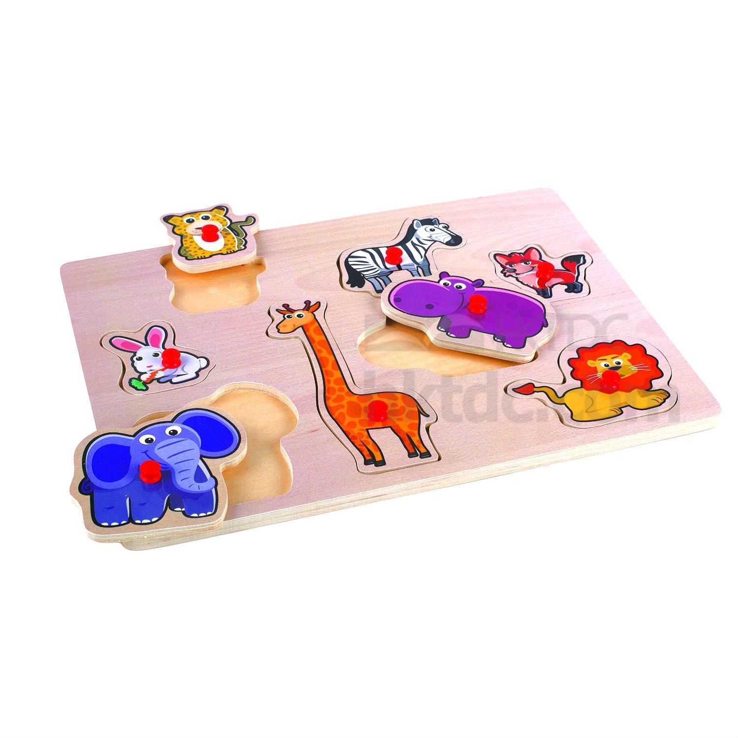 Containing various animal pieces in bright colors and different shapes, this animal peg puzzle provides a great way to introduce animals to a child.