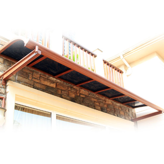 - Windows awning made with an aluminum frame and a polycarbonate roof.