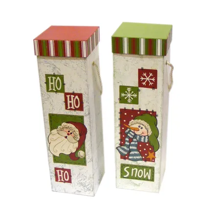 These wine boxes can be used when you plan to give a bottle of wine as a gift. The boxes look really interesting. One of them features Santa Claus, bearing the "HoHo" laughter of Santa; the other one of snowman shows snowflakes on the box.