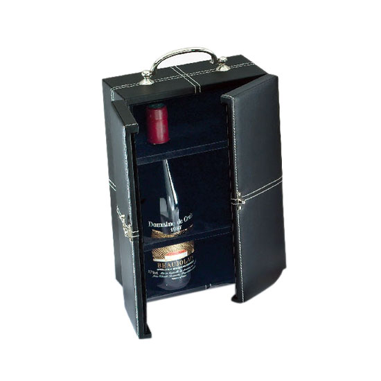 This is a high-quality wine box with an elegant appearance. It is made of top-grade wood for durability. This wooden wine box features a handle on the top for easy carrying.