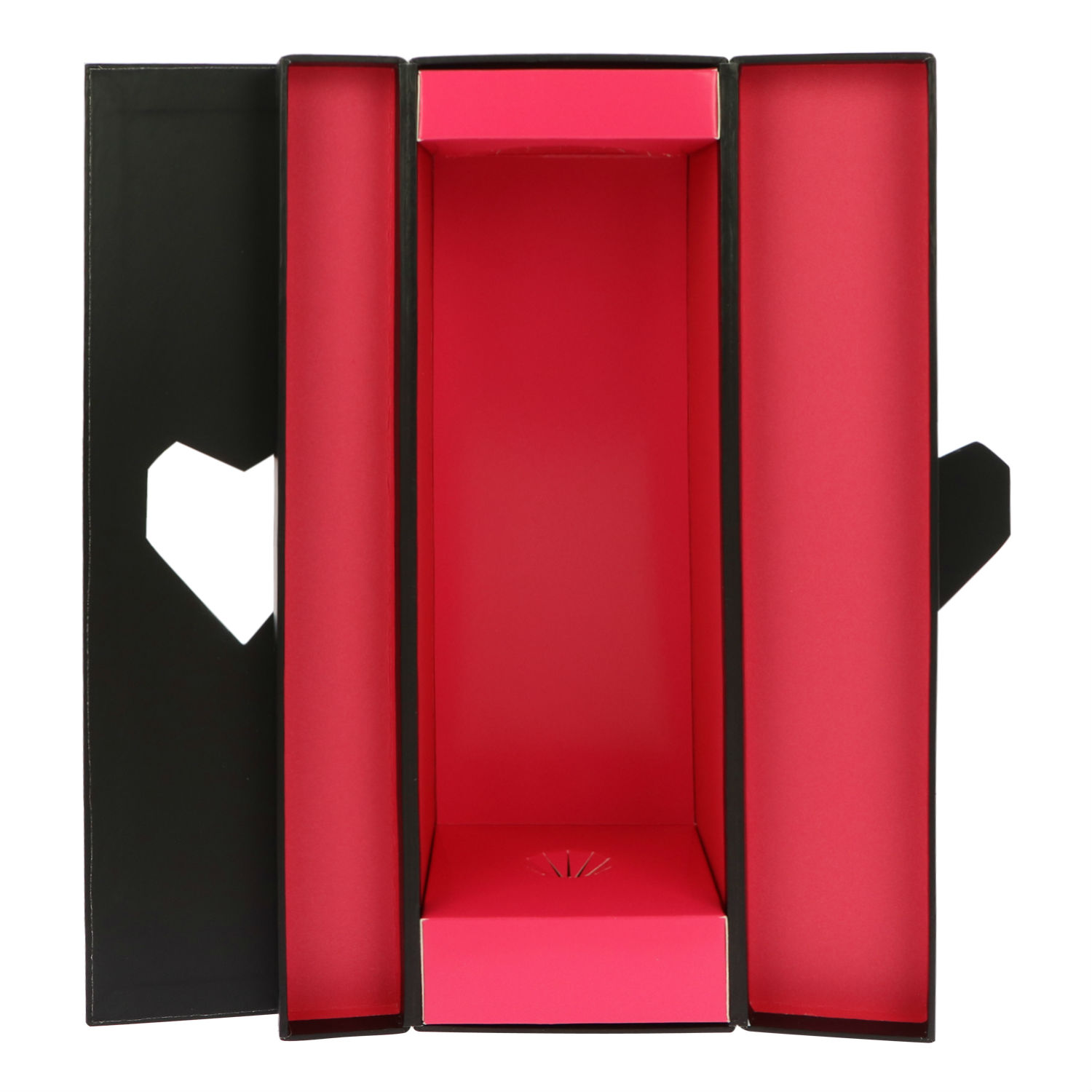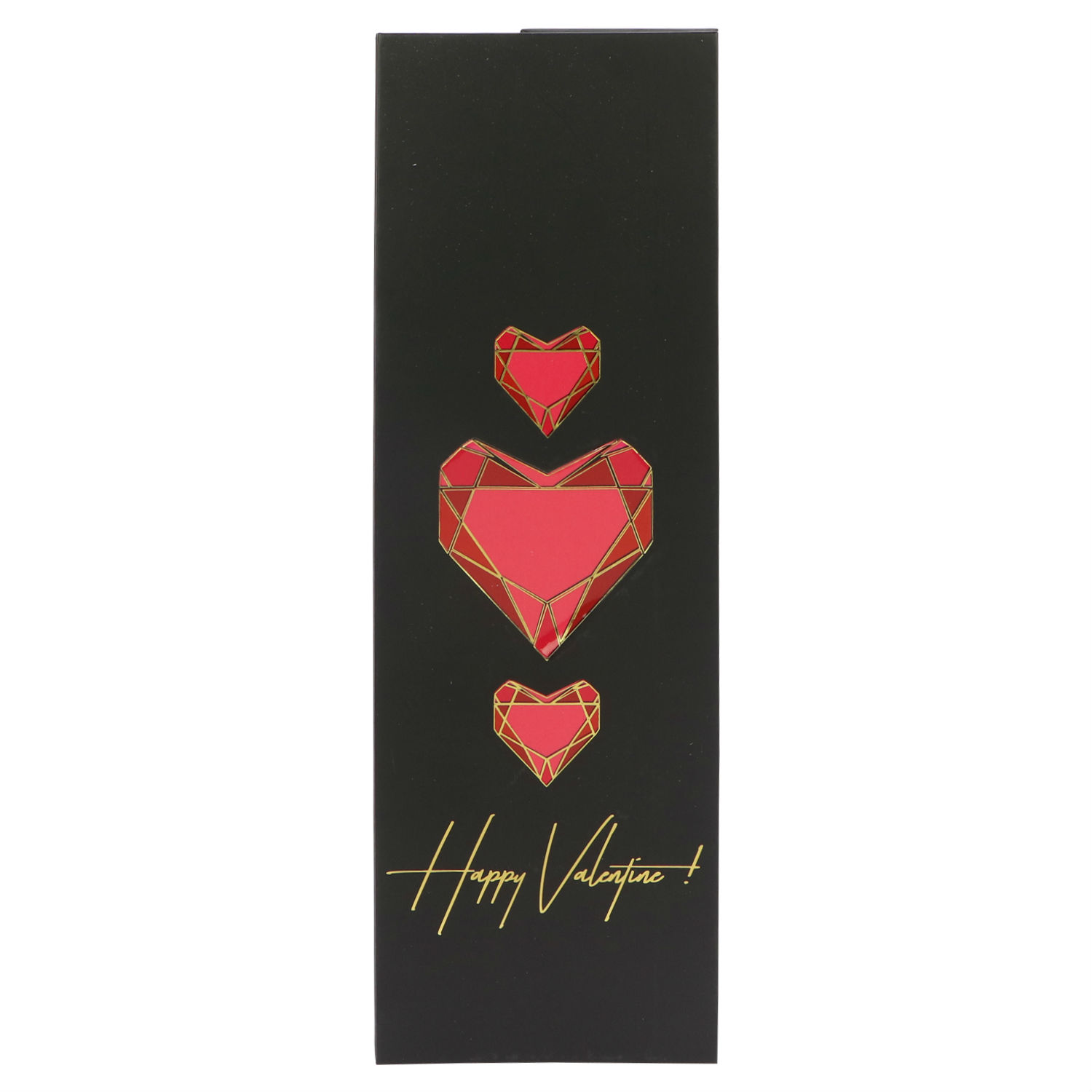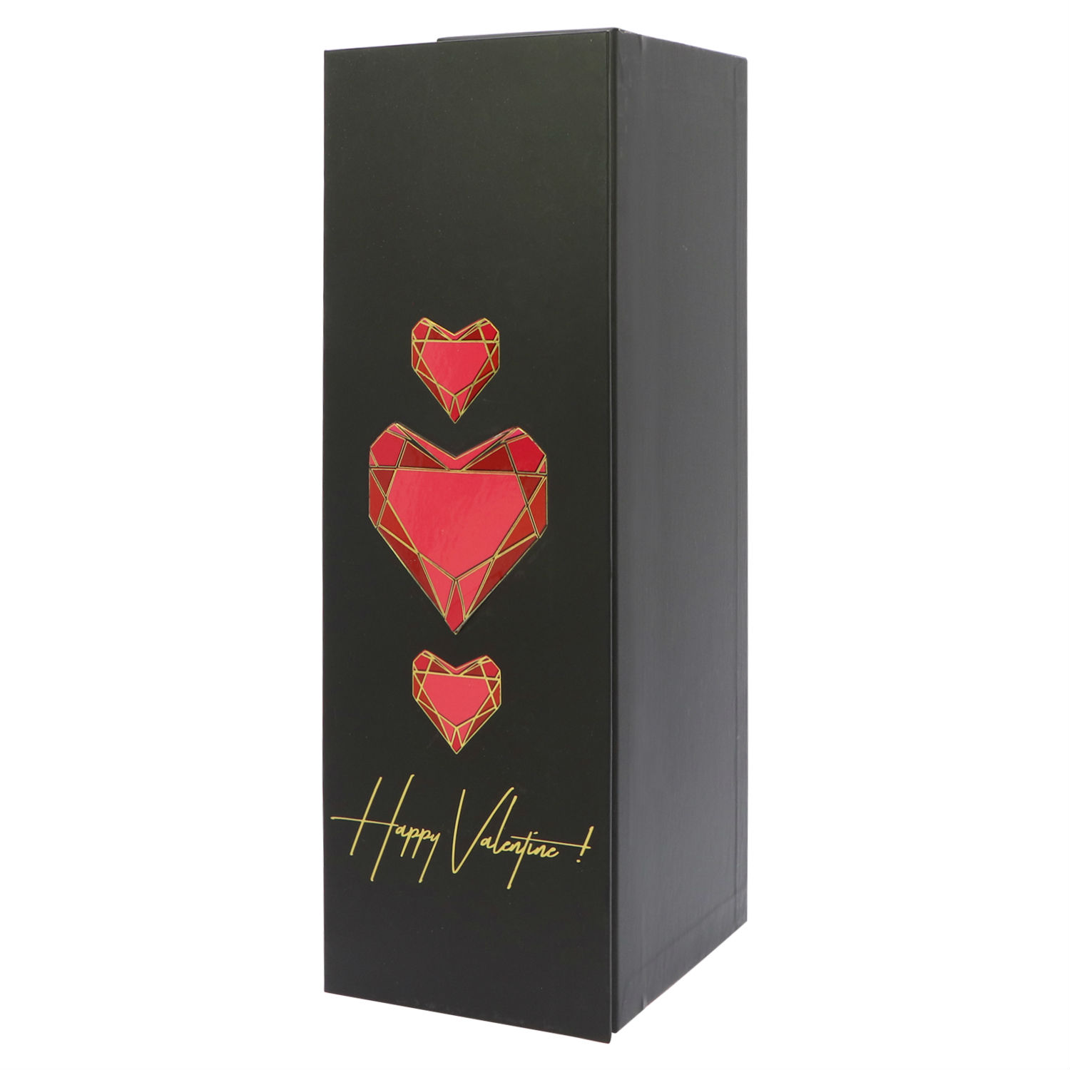 If you are spending the most romantic day of the year at home having a candlelit dinner, this wine packaging box is the one you need to hold your carefully selected wine. This wine packaging box comes in a dark color and features three hearts with diamond cuts for a romantic and sophisticated look. Accented with the words “happy valentine!” printed in calligraphy, this box is the one you need to hold your wine.