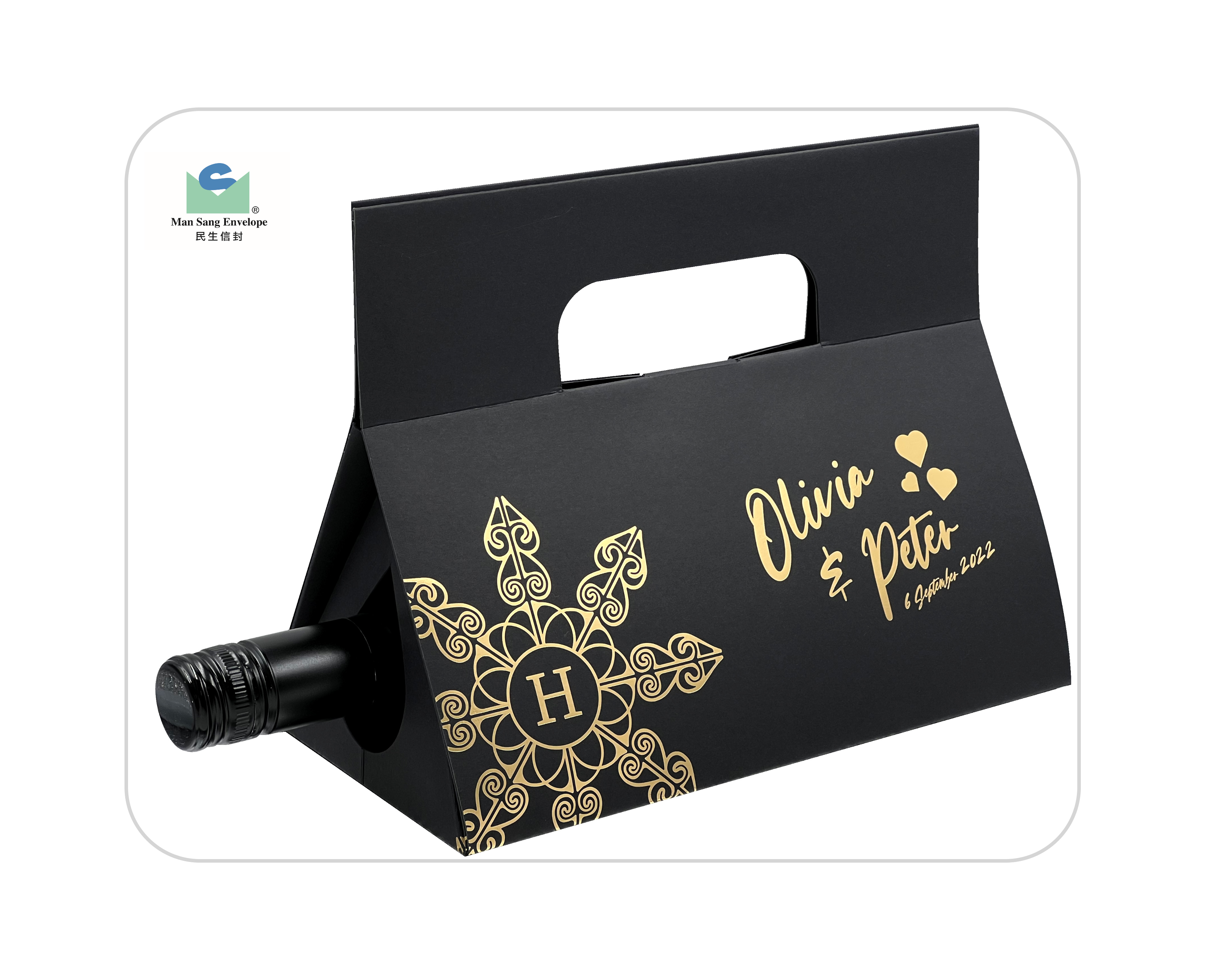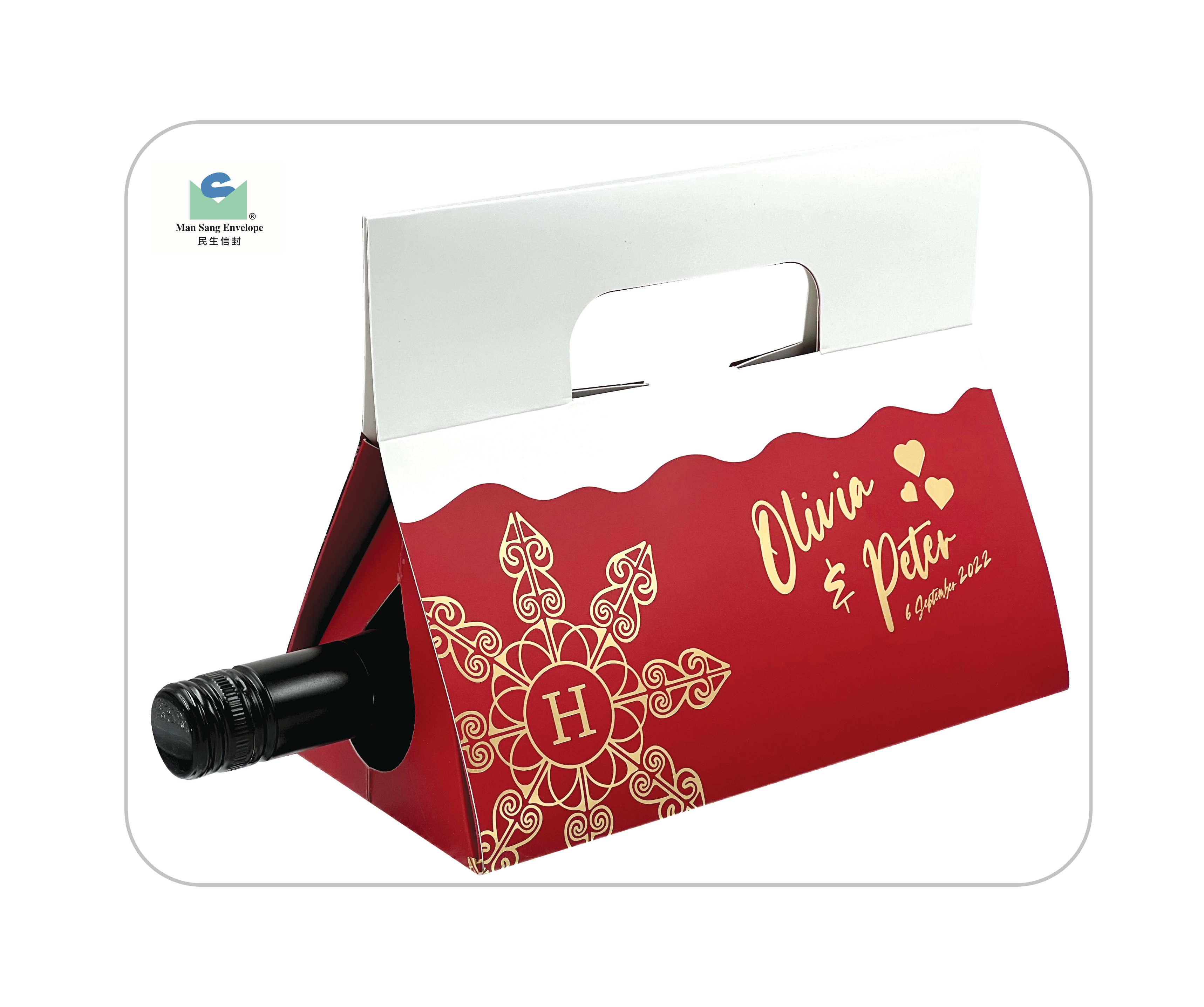 Paper made wine carrier box for holding a bottle of wine, foldable, easy for storage.