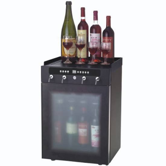 The wine cooler comes in a rectangular block design. It boasts several settings for keeping your wines tasty. The brushed window on the door lets you have a glimpse of your perfect wines. The countertop enables you to put items such as wines or decorations on it. This wine cooler makes a must-have item for wine lovers.