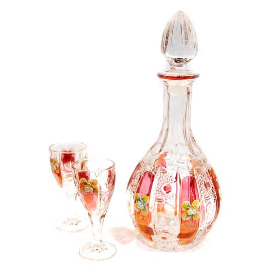 This gorgeous wine glass set features two pieces of wine glasses and a wine bottle. The charming floral print with imprinted carvings on the cover adds a decorative look to this wine glass set. The top crystal-like oval bottle cap is provided to offer excellent protection to the inside wine.