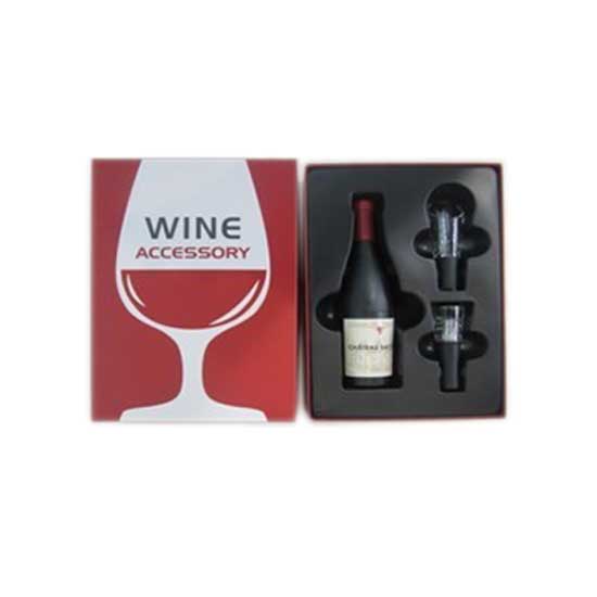 This wine set comes with a bottle of wine and two wine pourers. The wine pourers allow pouring straight from the bottle without splashing. This handsome wine set makes an ideal gift for wine lovers.