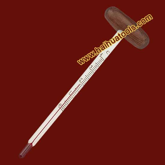 Photographed is a wine thermometer with a wooden handle. The wine thermometer measures the temperature of your wine in degree Celsius. Never miss the best moment to taste your favorite wine with this wine thermometer.