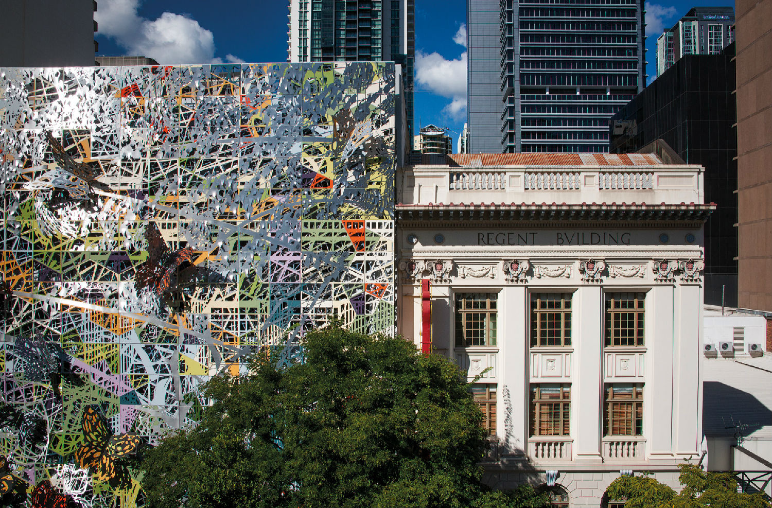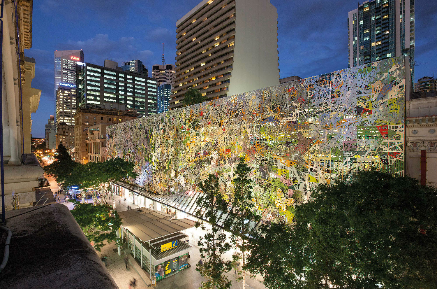Project description: This magnificent facade in the premier retail precinct of Queen Street Mall in Brisbane, Australia.