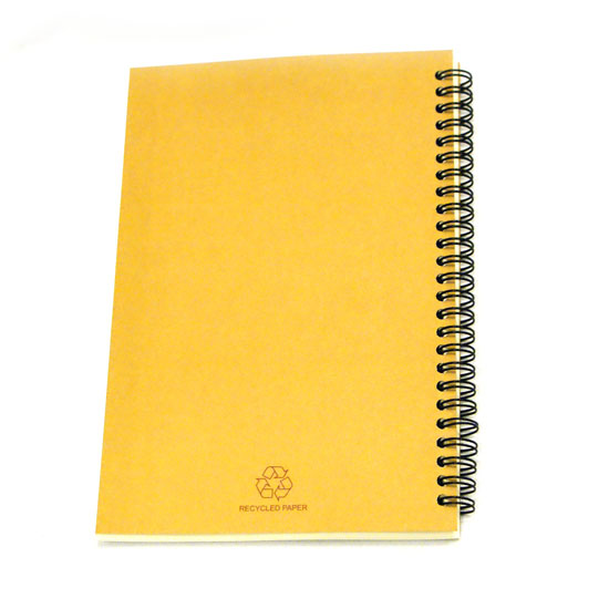 Shown is a notebook coming in a spring-bound style. The hard cover looks cheerful in sharp yellow. Quality recycled paper is used to protect the environment.