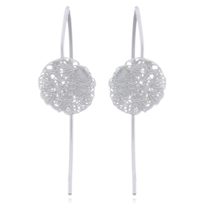 Wire Stamped Circle Sterling Silver Drop Earrings