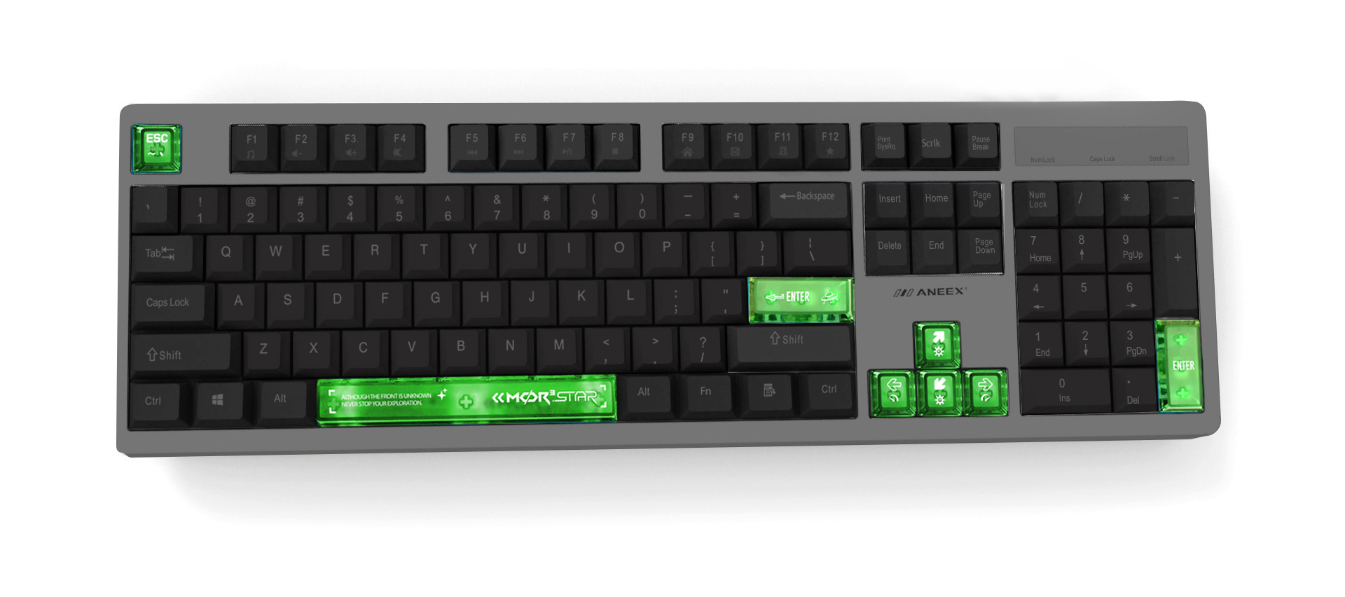 Keycaps: dural color Injection keycaps + 8 pcs transparent green color keycaps