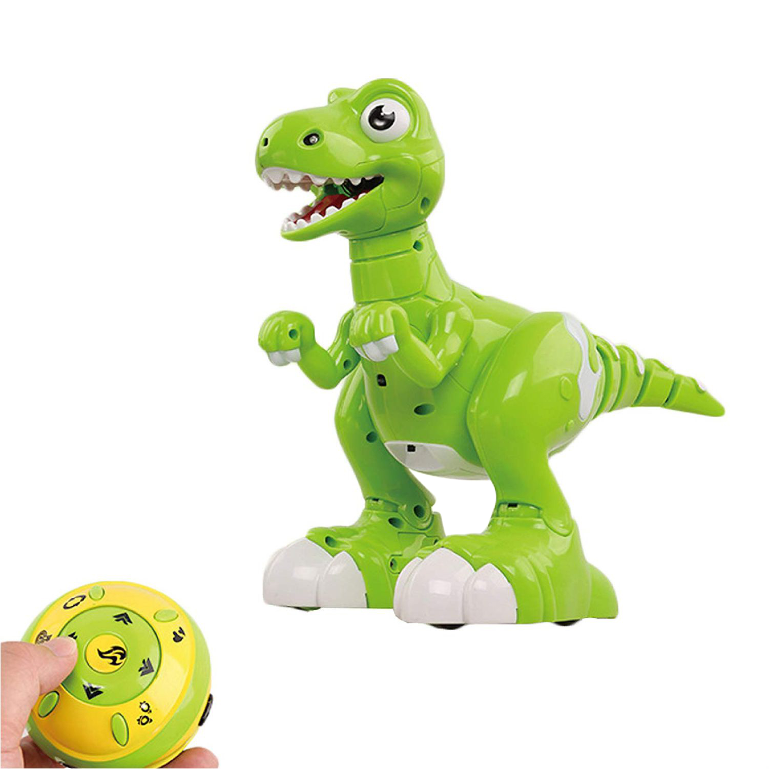 Remote controllable with 33ft long range controller, with which you can control the dinosaur to move forward/backward, to turn left/right, to sing, to dance, to turn in circles, to follow.