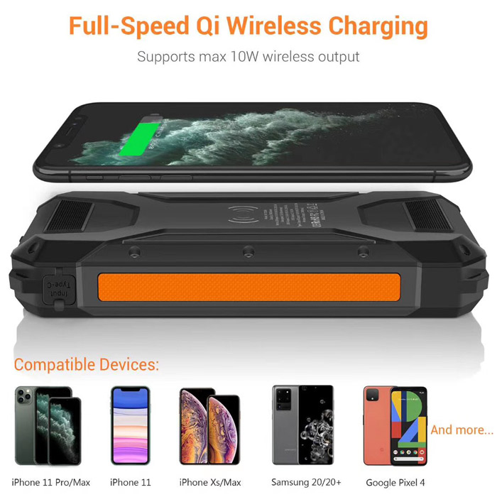 Output voltage USB: 5V±2V, Output Wireless: 5V/1A