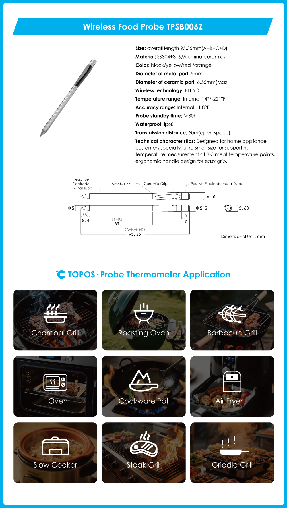 專為電器客戶設計,超小尺寸;支持3-5肉溫點 測溫;人體工學手柄設計便於握持