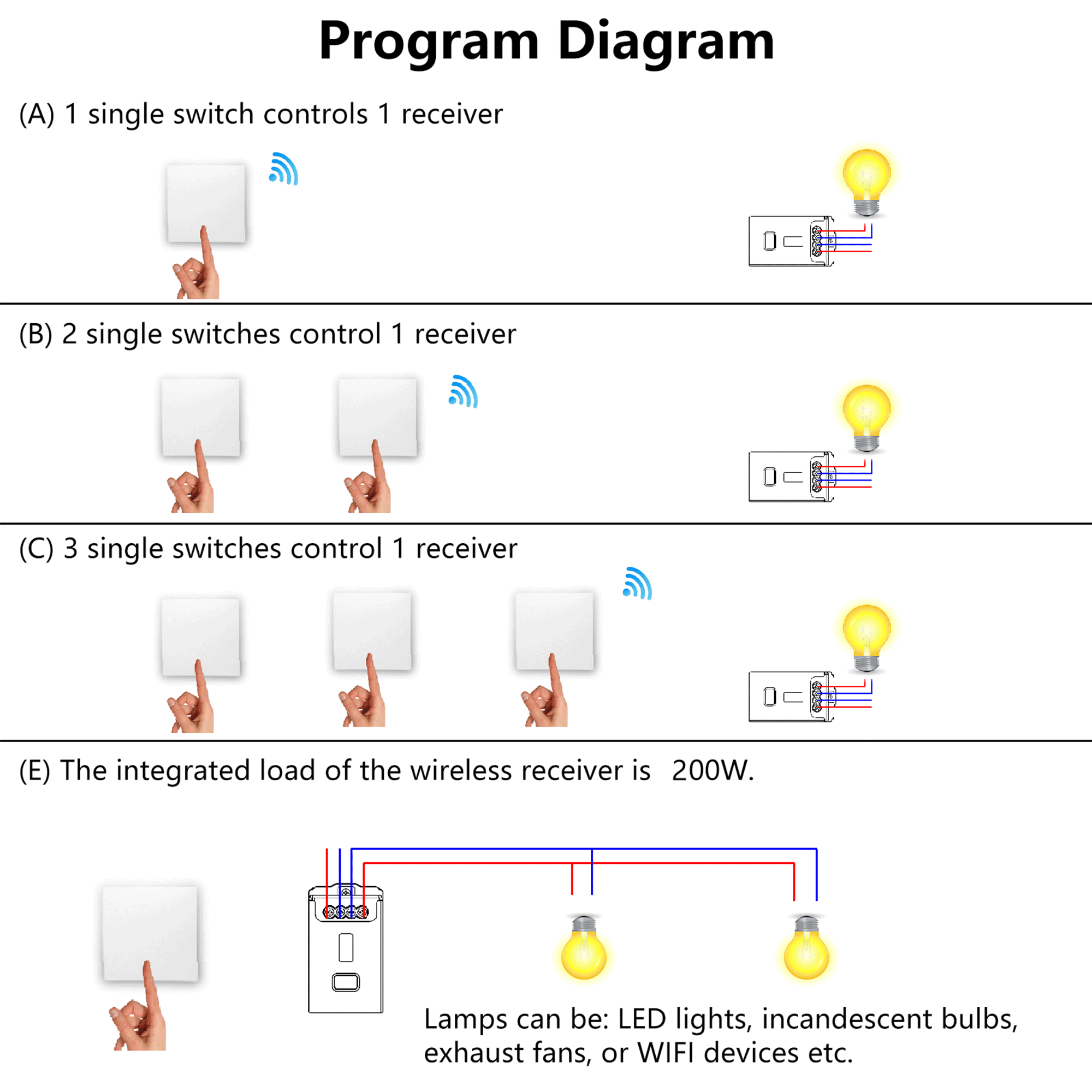 ⚠️【 KINDLY NOTE】- Exclusive Compatibility: Only ECO-NEWLEAF master wireless switch panels are designed to efficiently control multiple receivers. Please be aware that ordinary wireless switch panels may not function properly when used with multiple receivers.