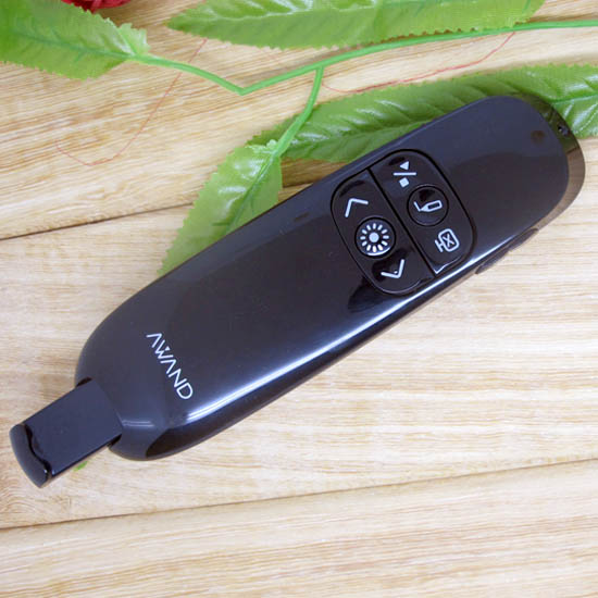 Showcased is this sleek black wireless presenter. This presenter comes with various handy functions namely red laser pointer, page up or down function, power point full screen. The Air-mouse gestural control design would further allows to have a better control of your presentation.