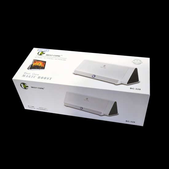 This high quality wireless speaker in white offers users a new experience to play music in your smart devices. It can also serve as a stand which allows you to view your tablet comfortably. This stylish wireless speaker is ideal for music lovers.