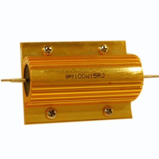 This wirewound resistor is equipped with a sturdy housing made of gold and aluminum. The 4 screws allow it to be fixed on a printed circuit board tightly. It is applicable to audio equipment, TVs and household electronic devices.